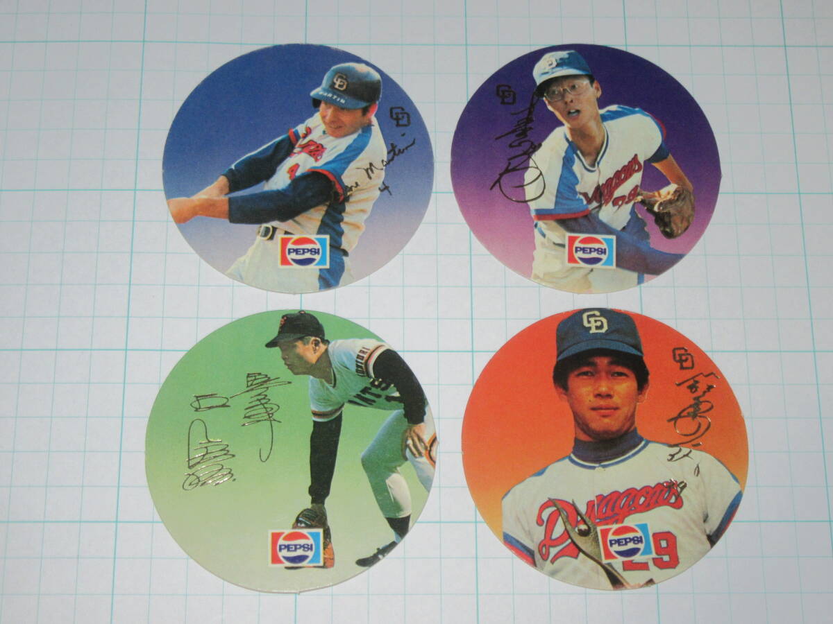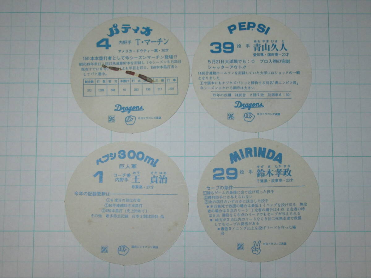 丸型カード ペプシ プロ野球 王貞治 鈴木孝政 青山久人 T・マーチン PEPSI めんこ メンコ ブロマイド おまけ オマケ