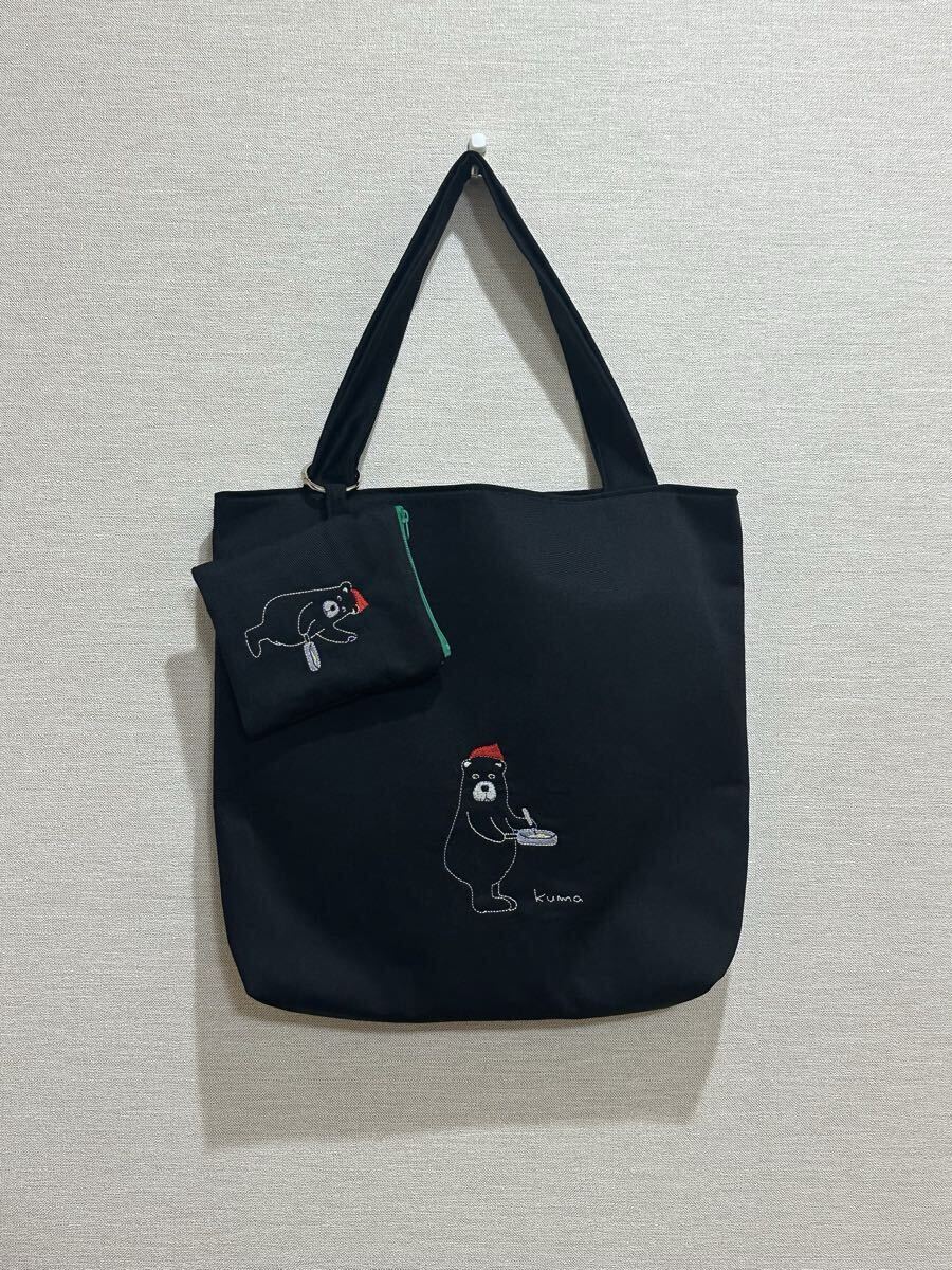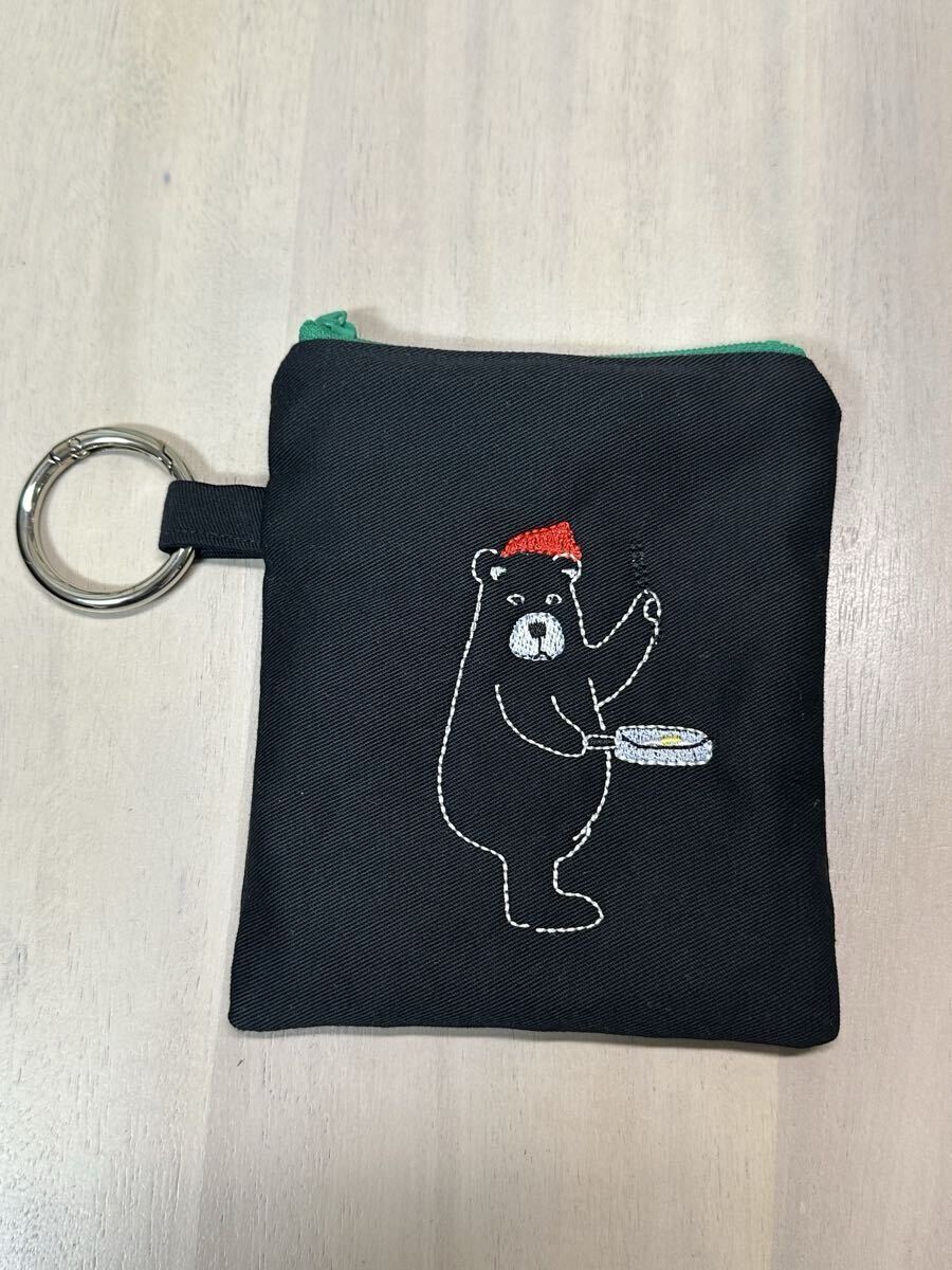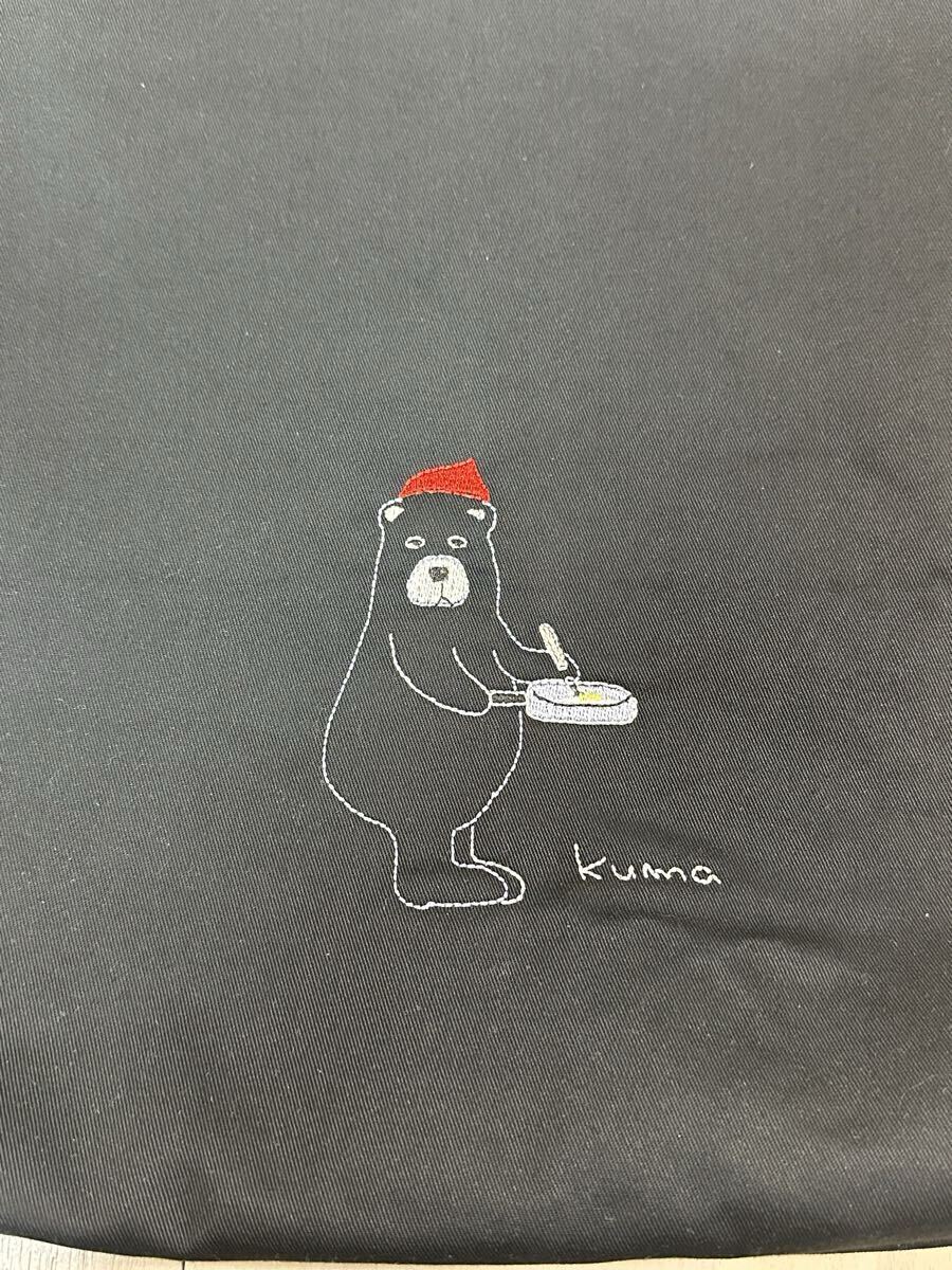 愛敬あるくまさんが料理をしているデザイン刺繍が入ってとてもかわいい作品です。