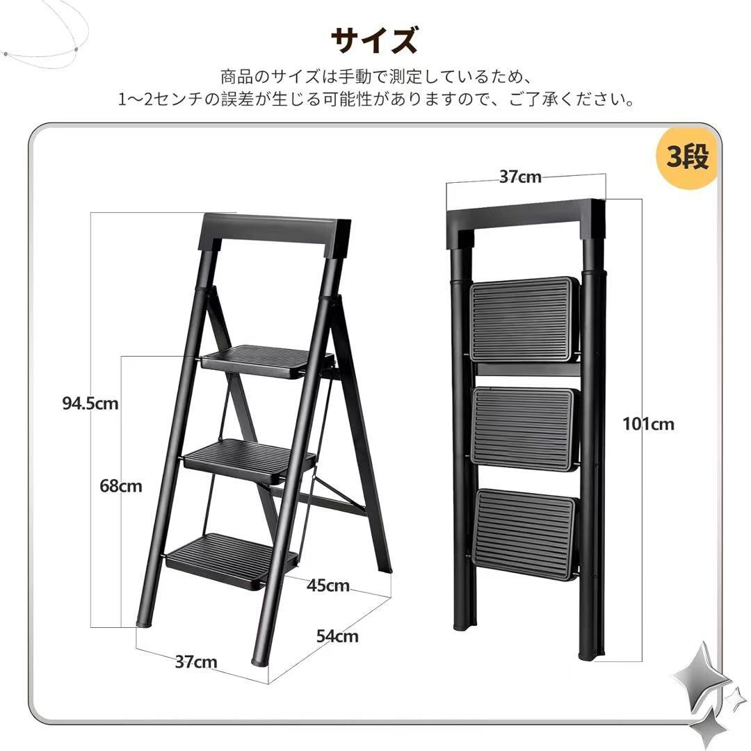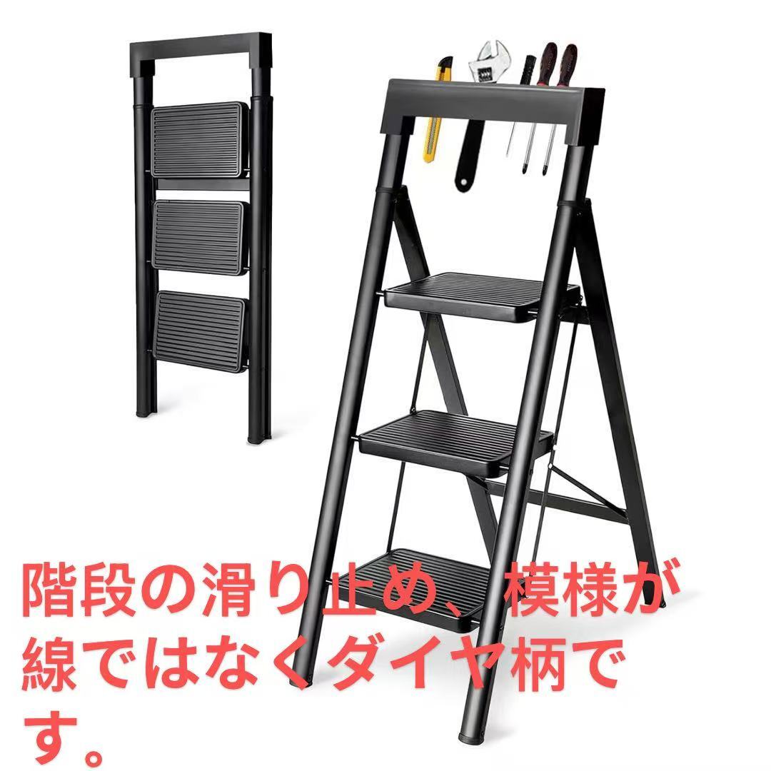 脚立 3段 折りたたみ式 手すり付き 室内・屋外用 耐荷重150KG コンパクト 省スペース 滑り止め付き