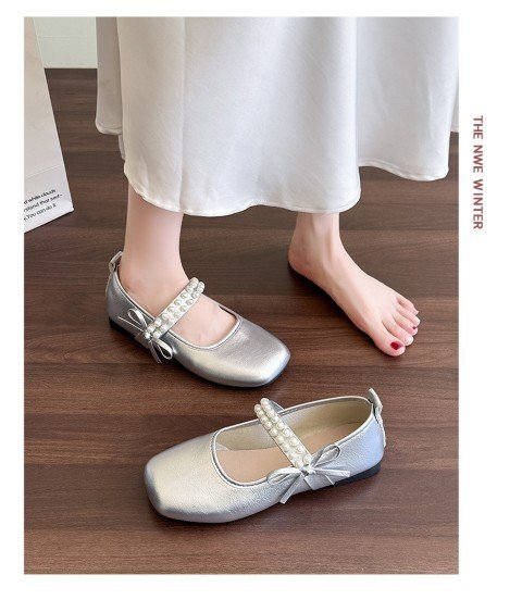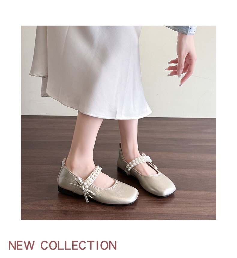 ・ころんと丸いつま先と華奢なビーズデザインで足元を演出。