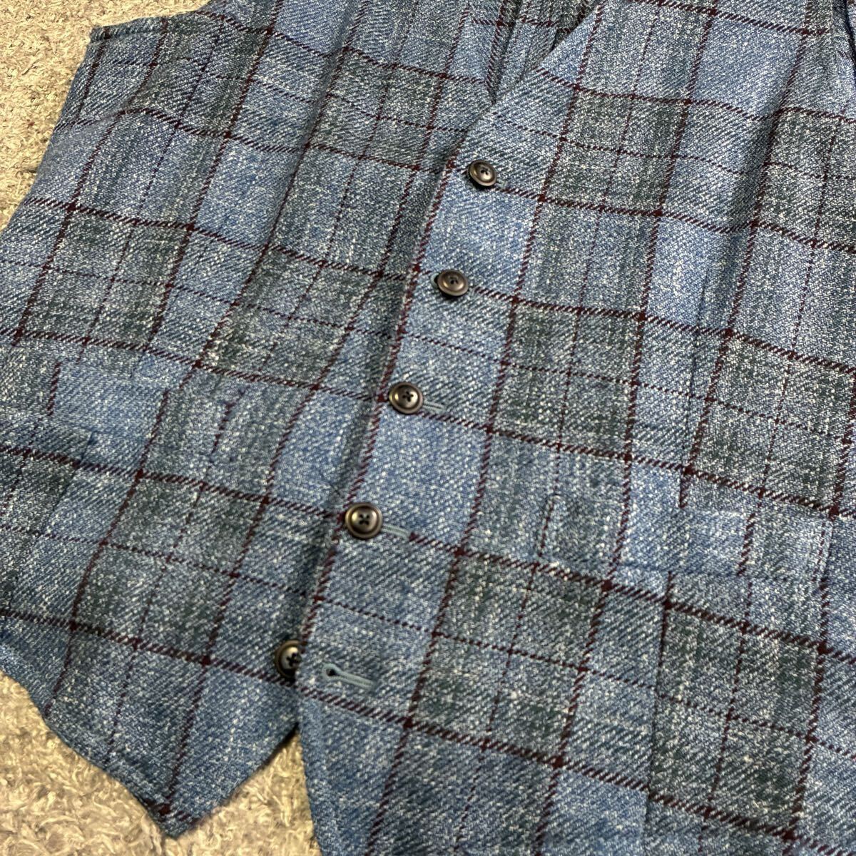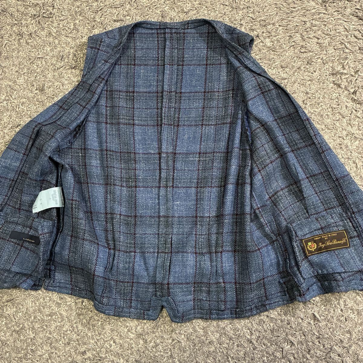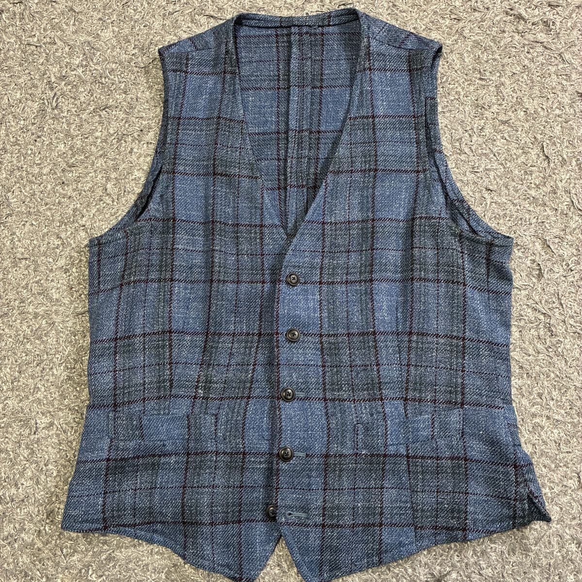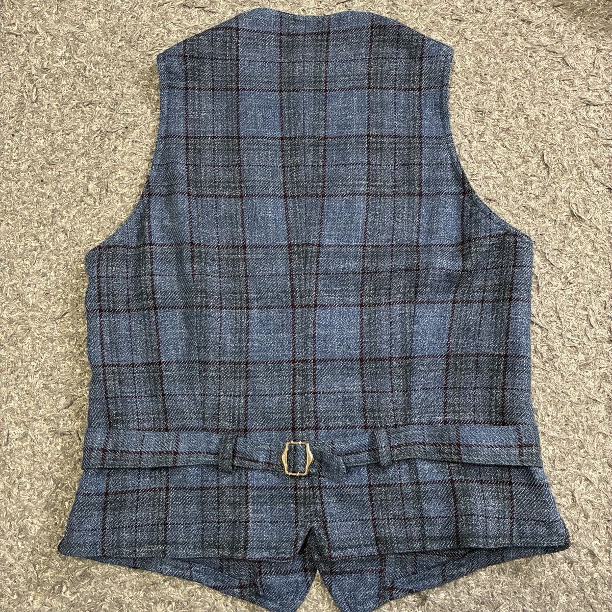 美品 ラルディーニ ロロピアーナ ジレ 3種混紡 ウール シルク リネン チェック ブルー ベスト イタリア製 サイズ46 LARDINI LORO PIANA 1円