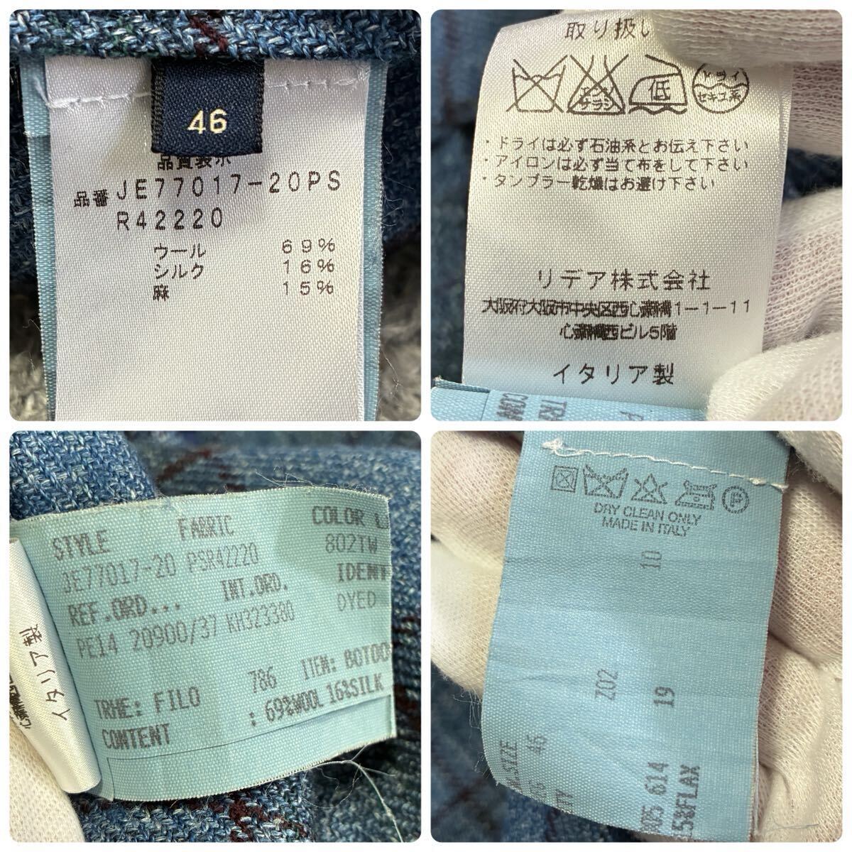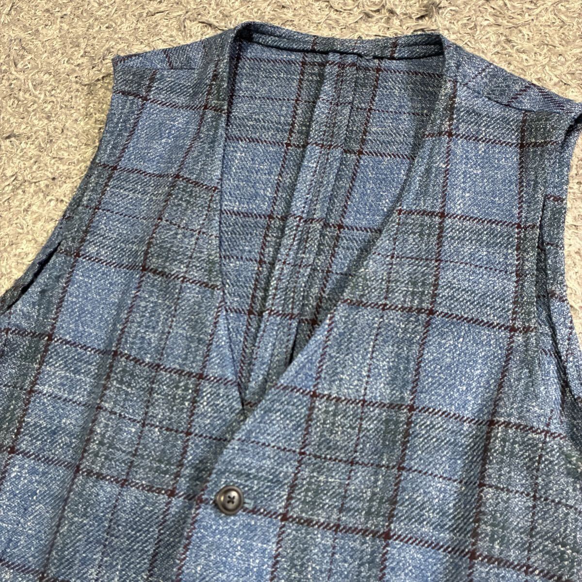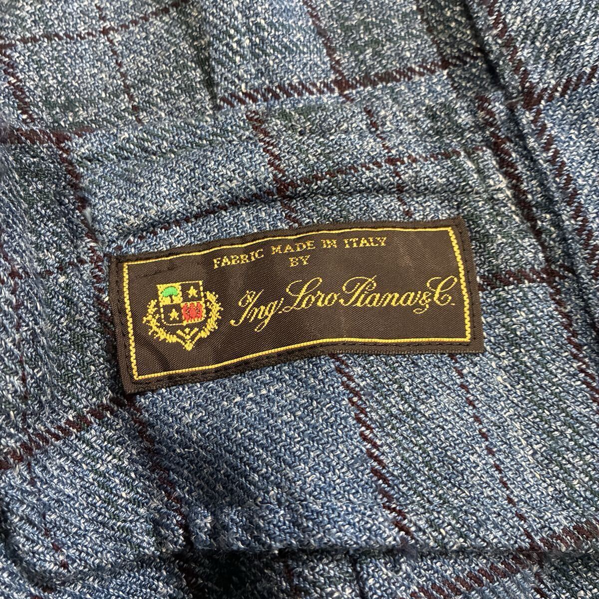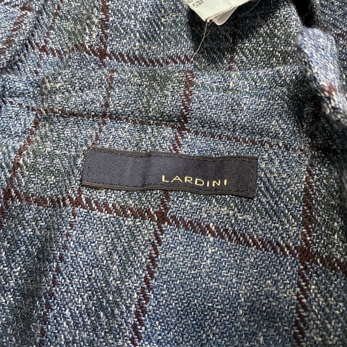 美品 ラルディーニ ロロピアーナ ジレ 3種混紡 ウール シルク リネン チェック ブルー ベスト イタリア製 サイズ46 LARDINI LORO PIANA 1円