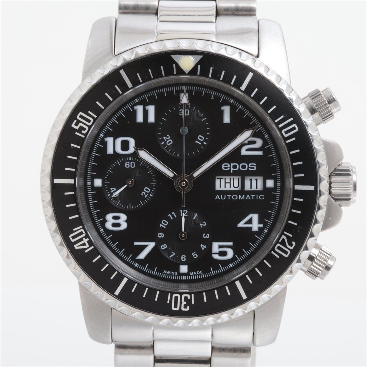 ■ 1円 ~ 中古品 参定14.7万■ エポス epos ■ スポーティブ ダイバー クロノグラフ 3365 ■ 自動巻き ブラック 黒 メンズ ダイバーズ