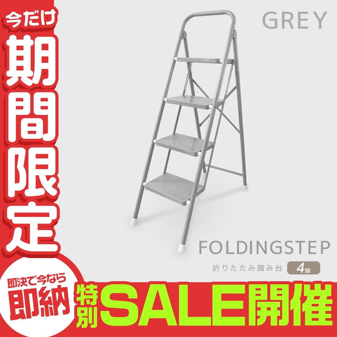 ステップ台 4段脚立 (折りたたみステップ 滑り止め加工) 耐荷重(約): 150kg 段数: 4段タイプ カラー: グレー 暮らしに馴染むやさしいカラーの折りたたみステップです。 一家に一台あると便利! 照明器具の交換や、高い位置になる棚から物を取り出すときに便利!! 耐荷重(約)150kg&ワイドステップ!安定感抜群で安心♪ また、滑り止め加工・握りやすい持ち手・脚先グリップで最上段まで簡単に上れます! お部屋や玄関に置いても邪魔にならないスリムサイズ。 折りたためばコンパクトに!手軽に持ち運びできちゃいます☆ |