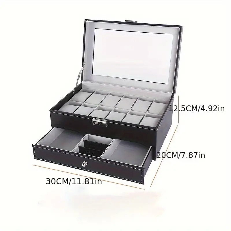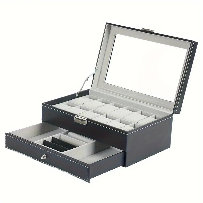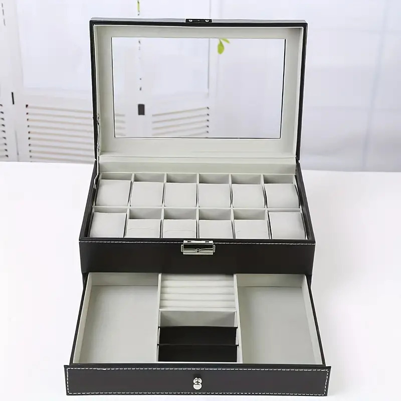 PUレザー時計ボックス 時計ディスプレイ ウォッチボックス コクションケース 12本用 腕時計収納ボックス(棚付き) | |
