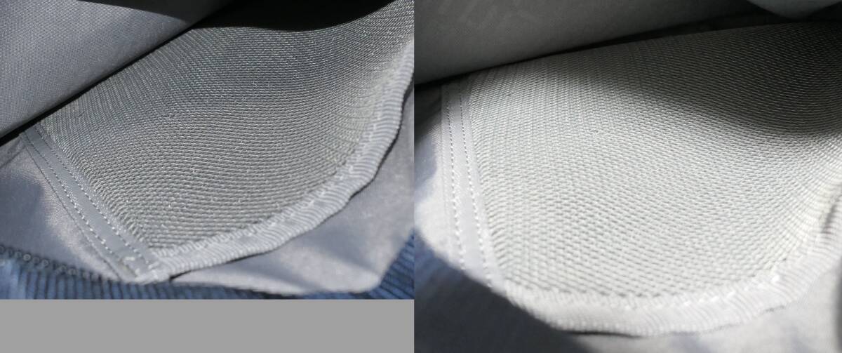 3.画像10枚目にあるように、フロントのポケットの中の網目状のポケットの網目生地に、小さな3カ所の糸ほつれ箇所があります。
