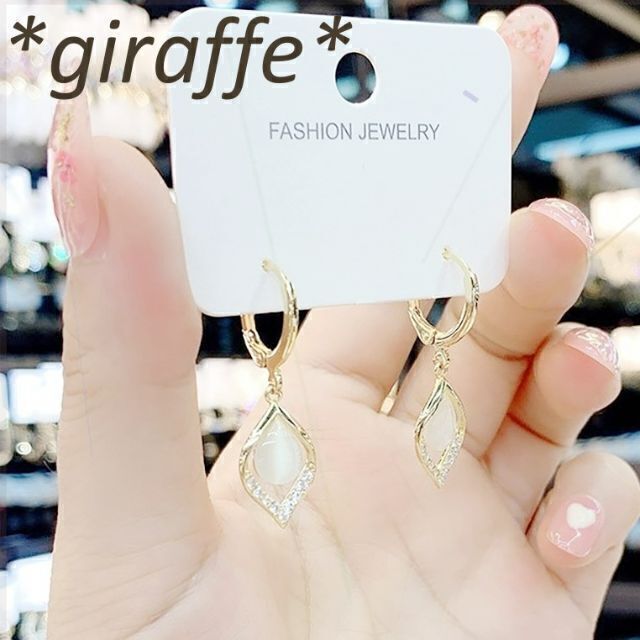 B382 匿名配送 ピアス レディース 揺れる ドロップ オパール リングピアス ゴールド s925 刻印あり ラインストーン