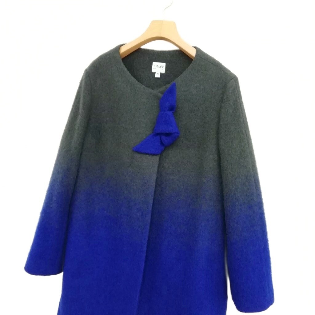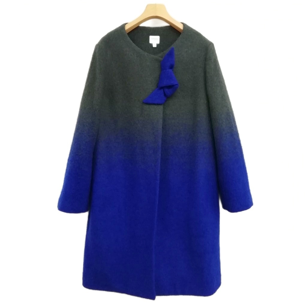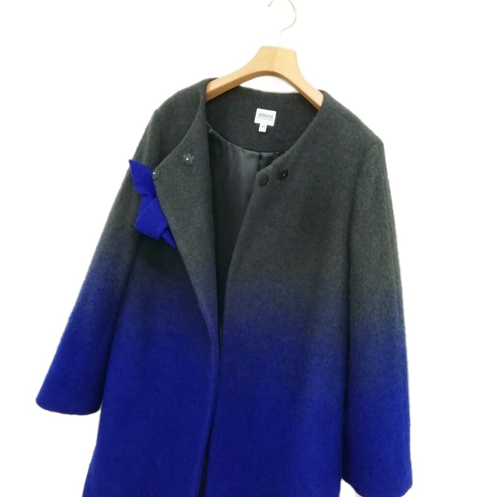 アルマーニ コレツィオーニ ARMANI COLLEZIONI グラデーション ノーカラー Aライン コート 42 チャコール ブルー レディース
