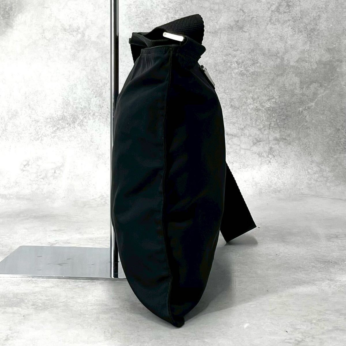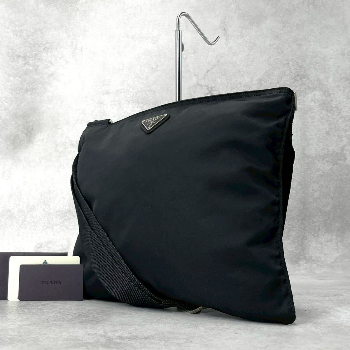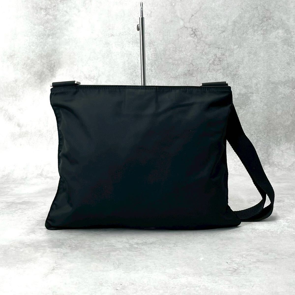 未使用級◆PRADA プラダ ショルダーバッグ テスートナイロン 三角プレート 三角ロゴ トライアングル ブラック 黒 メンズ レディース