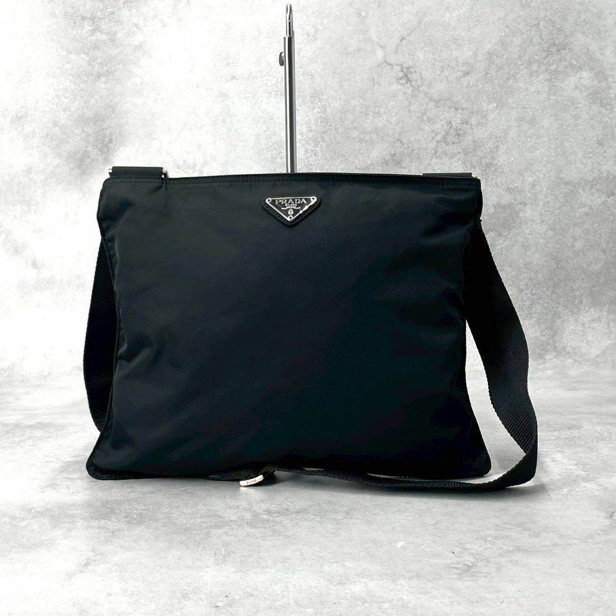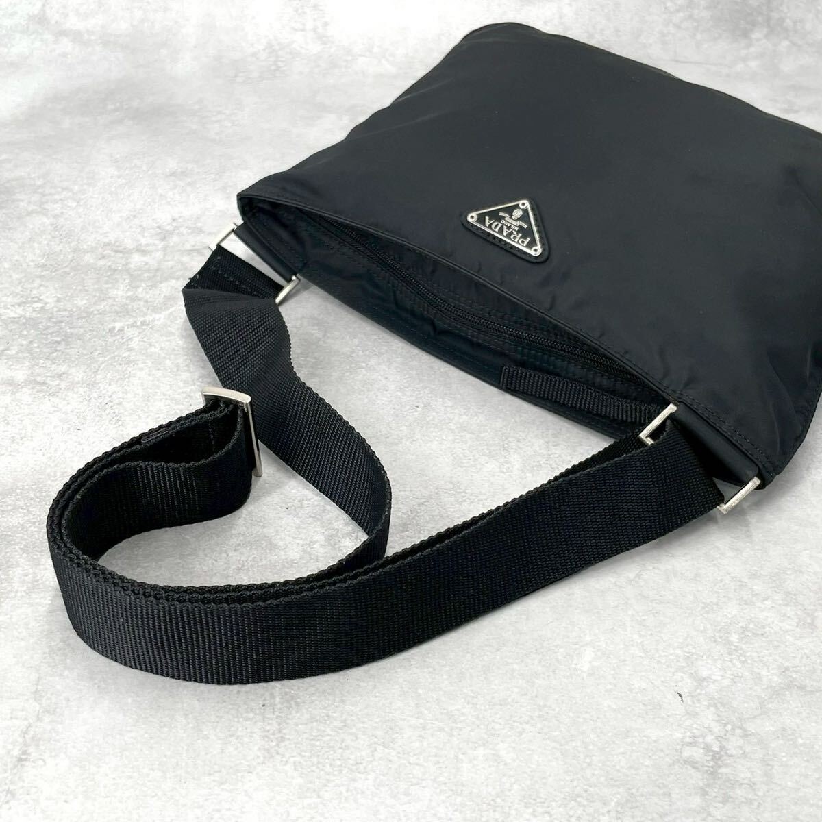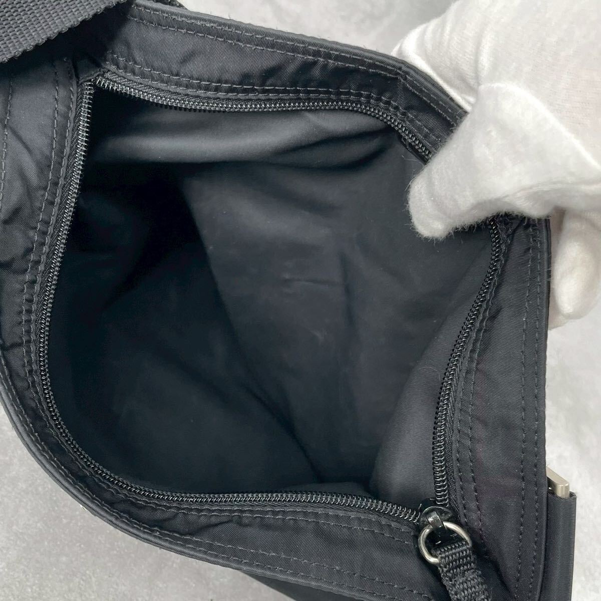 未使用級◆PRADA プラダ ショルダーバッグ テスートナイロン 三角プレート 三角ロゴ トライアングル ブラック 黒 メンズ レディース
