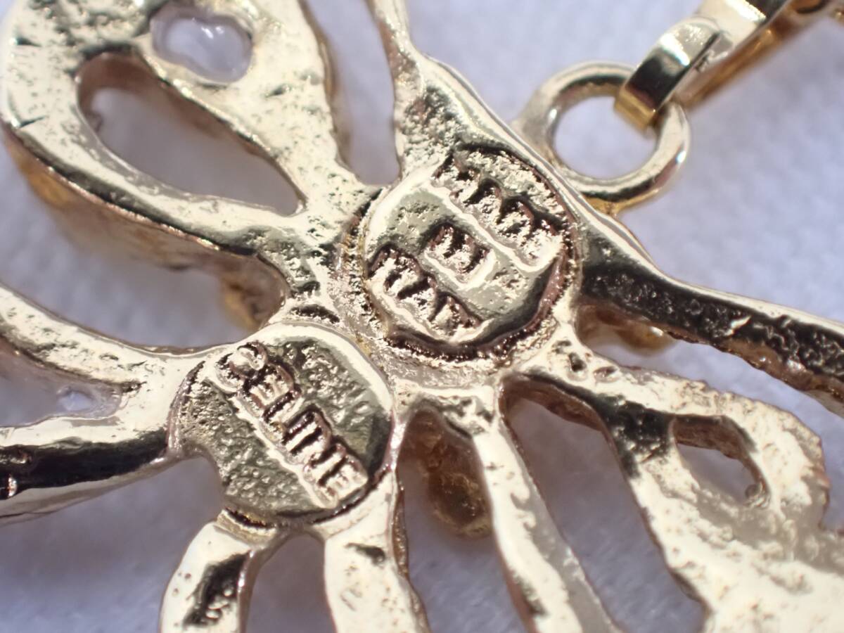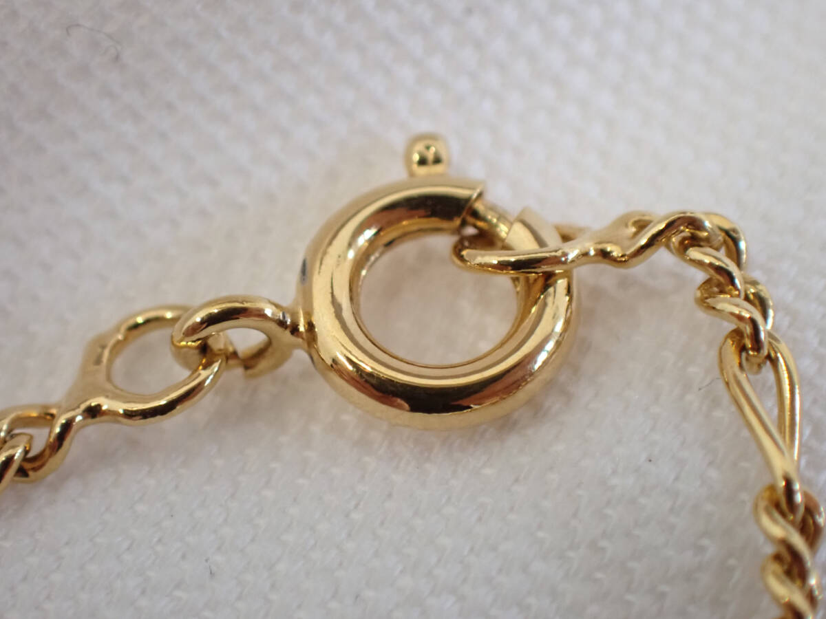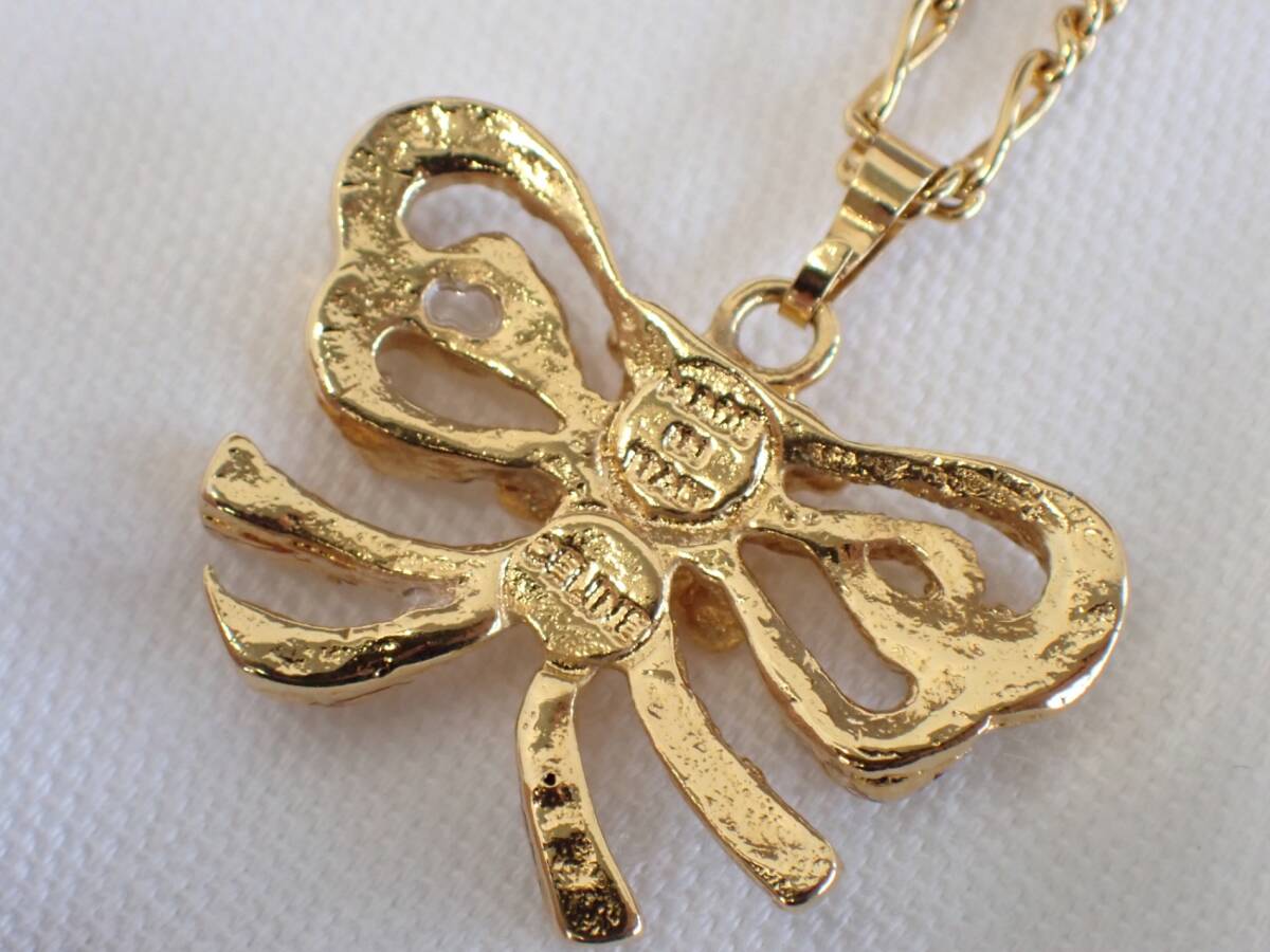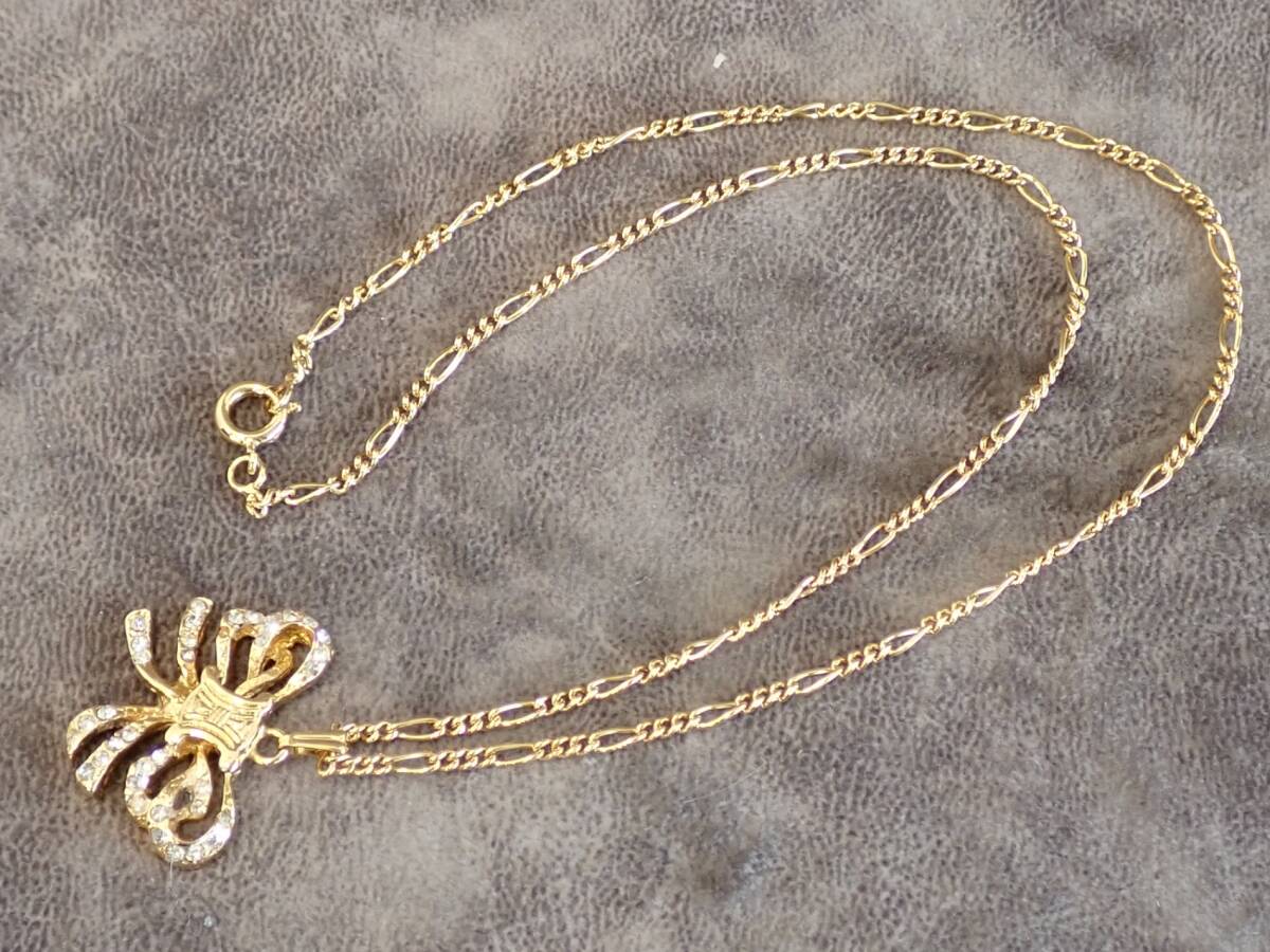 | コメント | 状態も良いコンディションです。リボンのモチーフにラインストーンが施されたネックレスです。1カ所ラインストーンに欠けがございますので、ご注意ください。欠けが1カ所ございますが、その他のラインストーンは鮮やかな輝きを保っております。裏側にも刻印がございますので、写真をご確認ください。露出の増えるこの夏の時期にピッタリなネックレスです。首元を華やかに演出してくれます。 | |