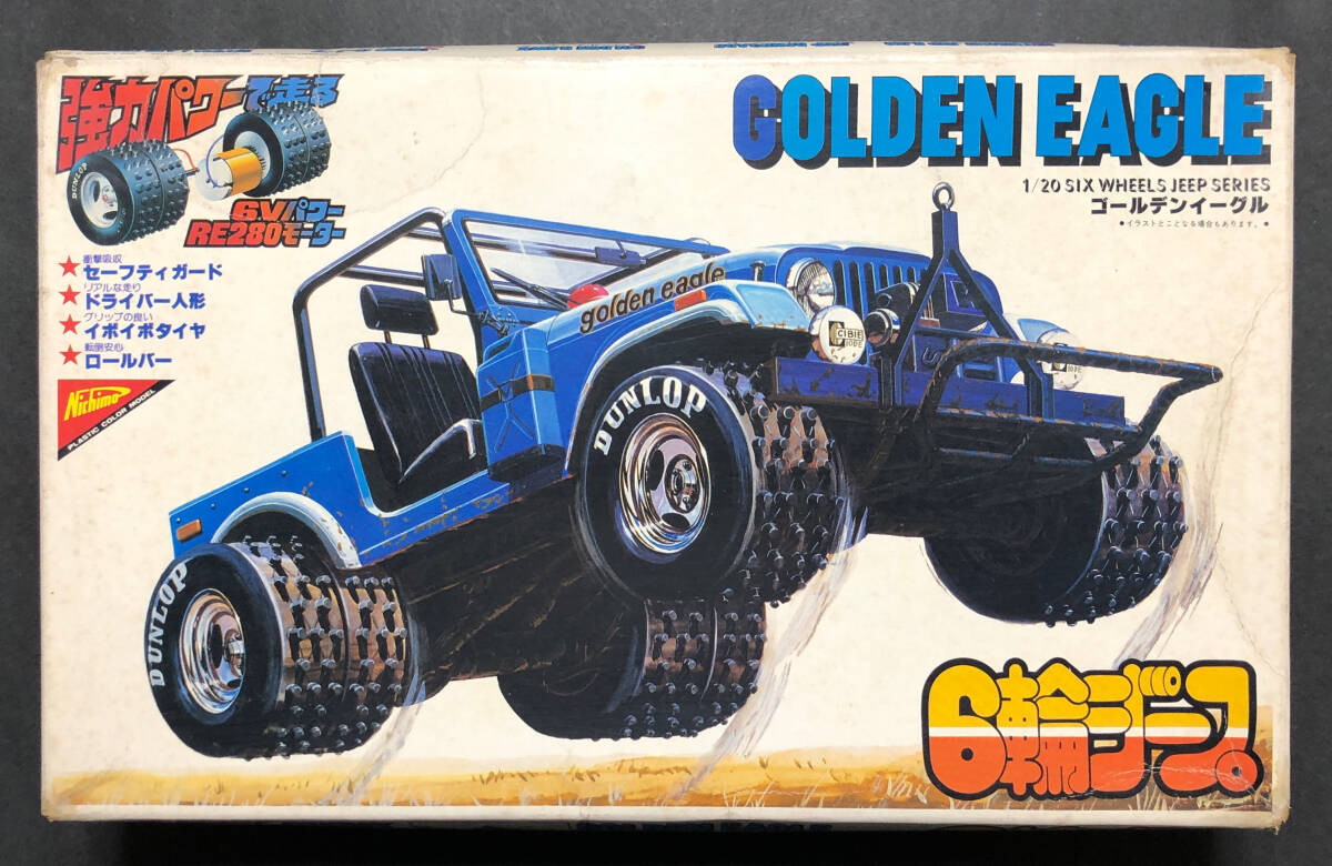 @中古絶版模型堂ニチモ1/20ジャンク(AMCジープCJ-7)ゴールデンイーグル6輪ジープをお譲りします。ジャンク理由は メーカーエラーなのかタイヤ6輪中2輪欠品です。またクリヤーパーツにコード跡が見られます。状態は箱に日焼け傷み凹み等があります。ゴムや金属類、デカールがある場合は古いものですので使えるかどうかわかりません。また一通りパーツの確認はしていますが、内袋未開封品等は細かなパーツの見落としがある可能性がございます。入札後はノークレームノーリターンですので気になる点は入札前にご質問下さい。発送は定形外郵便補償無し簡易梱包660円かゆうパックスマホ割80サイズ(料金宅急便EAZYよりお安いです)のみです。ゆうパックご希望の場合は電話番号を取引メッセージからお知らせ下さい。また問い合わせ番号は日々の発送数が多く誤通知防止の為、スマホ割の配達予告通知のみでのお知らせとさせていただいています。こちらをご希望の場合もメールアドレスを取引メッセージからお知らせください。当店サイト(「czmokeido.3zoku.com/」で検索してください)の商品も同梱発送させていただきますが、送料は梱包サイズによって変わります。