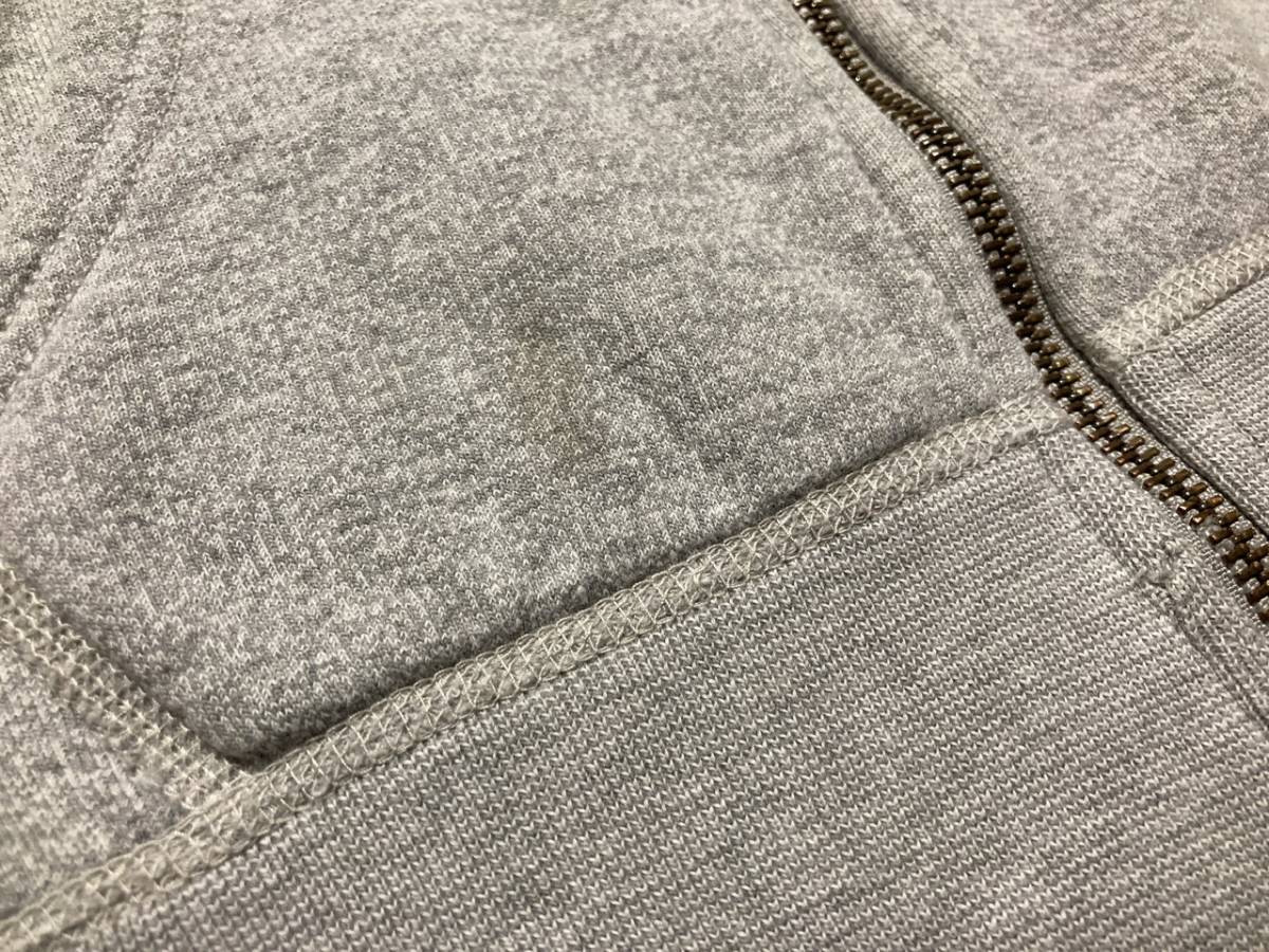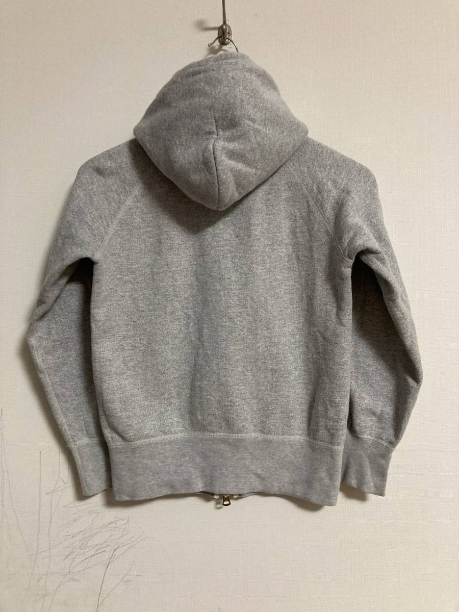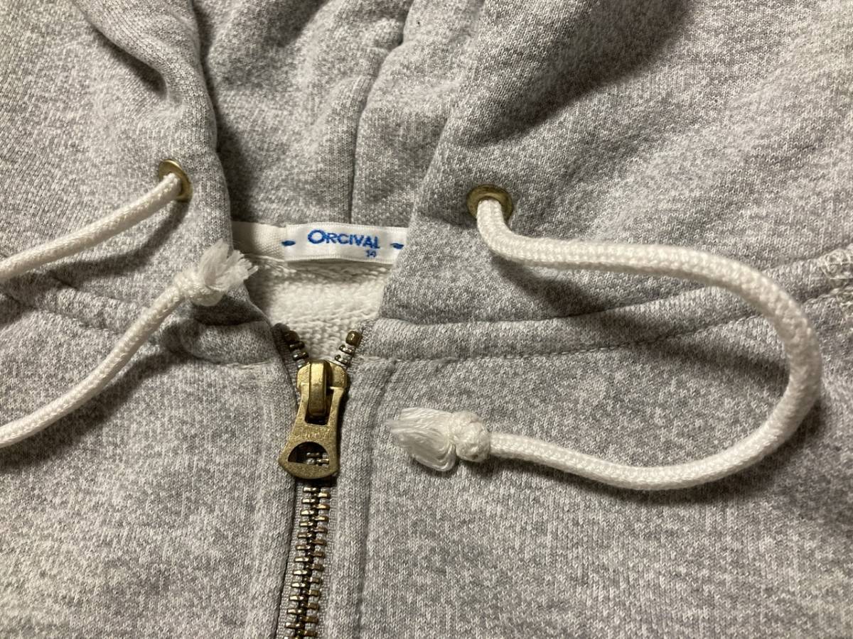 商品名:ORCIVAL ダブルZIPスウェットパーカ サイズ:表記14 平置き:肩幅(計測不可) 身幅(脇下~脇下)44cm 着丈(フード付け根~裾)50 ,5cm 裄丈69c m ※素人採寸の為多少の誤差はご了承下さい。 カラー:グレー 状態:日本製。コットン100%。YKKダブルZIP。フード紐付き。ポケット付き。左袖先にロゴ。右ポケットに汚れあり(画像5)。裾リブZIP付近に小さなダメージあり(画像6)。その他使用感等ありますが目立ったダメージ無く一般古着程度だと思います。 発送方法:レターパックプラス(配達記録付600円) ※古着になりますので神経質な方、ご理解の無い方の御入札はお控え下さい。送料、振込手数料は落札者様の御負担となります。ノークレーム、ノーリターンでお願い致します。