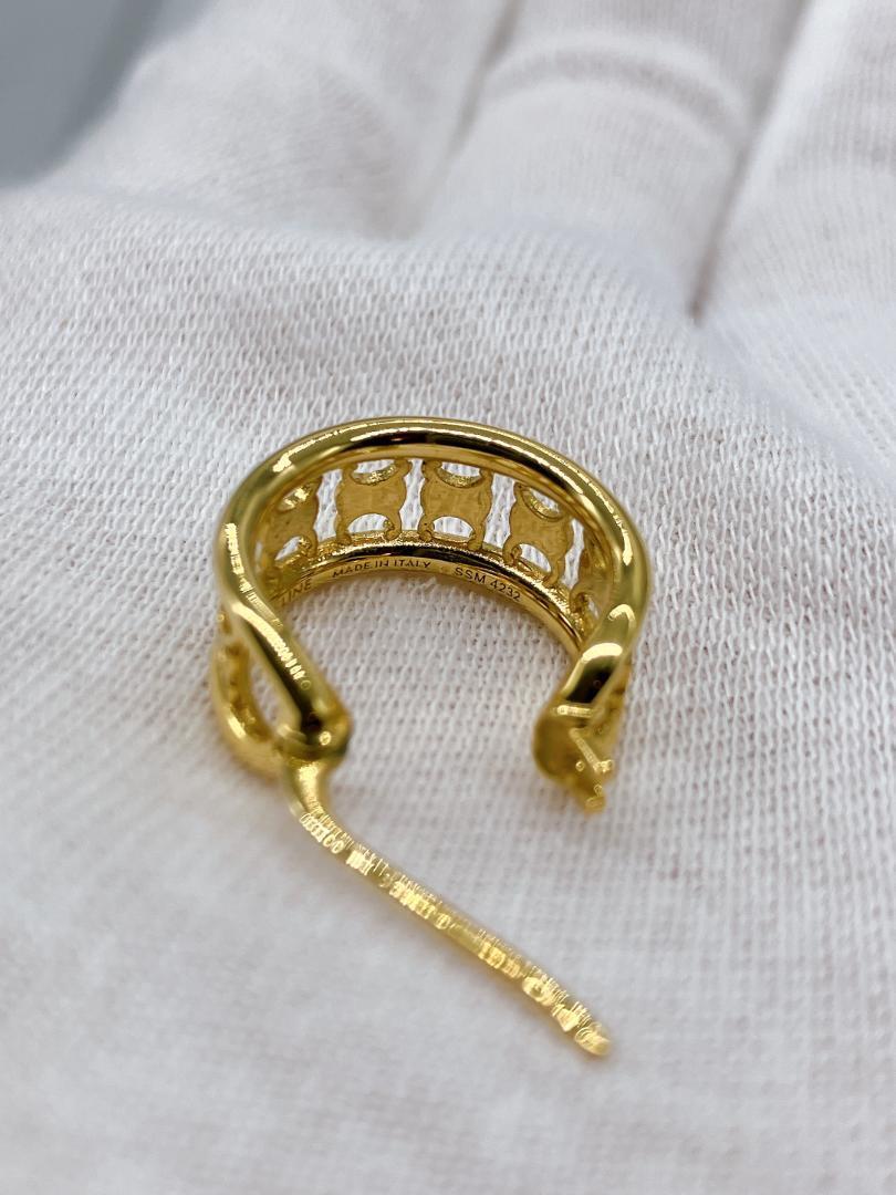 ゴールドカラーの上品な輝きと、セリーヌならではのクラシカルで洗練されたデザインが魅力。小ぶりながらも存在感があり、耳元に華やかさをプラスしてくれます。