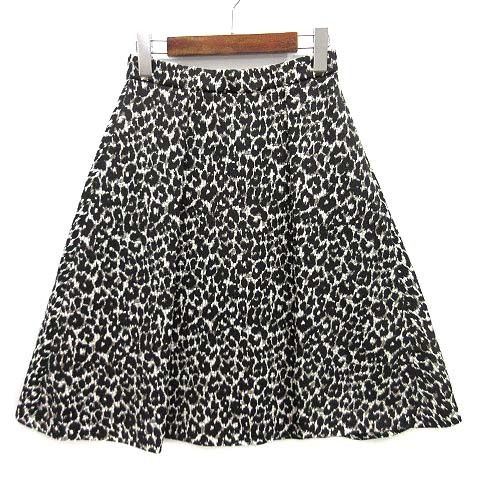 未使用品 ストロベリーフィールズ STRAWBERRY-FIELDS レオパード ジャガード フレア スカート 膝丈 ブラック 2 日本製 レディース