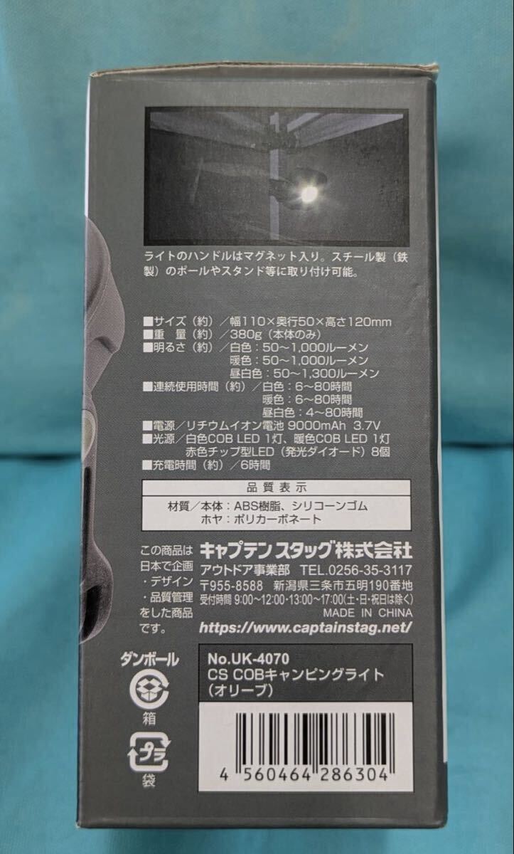 ◆未使用 未開封◆CS COBキャンピングライト・UK-4070・(オリーブ)キャンプ アウトドア 災害備品の出品となります。◆
