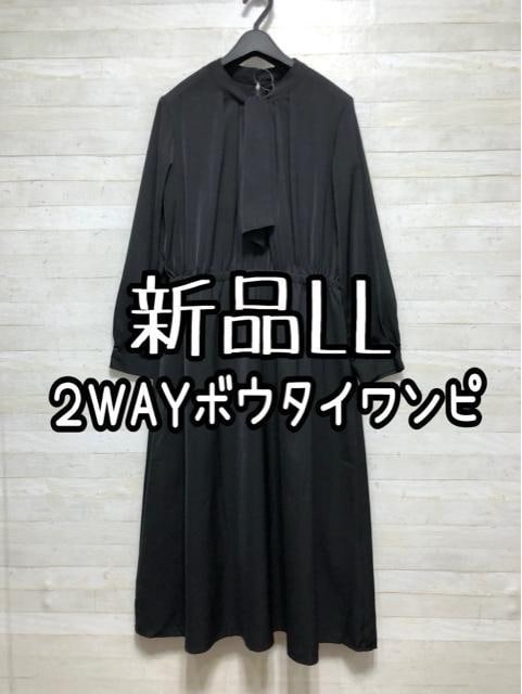 新品☆LL♪黒無地♪ボウタイ2WAYワンピース♪お出かけなど色々♪☆Q138