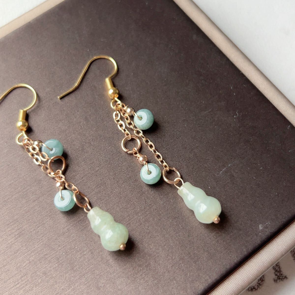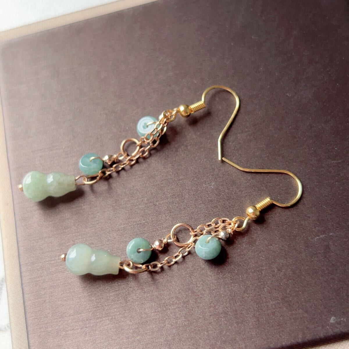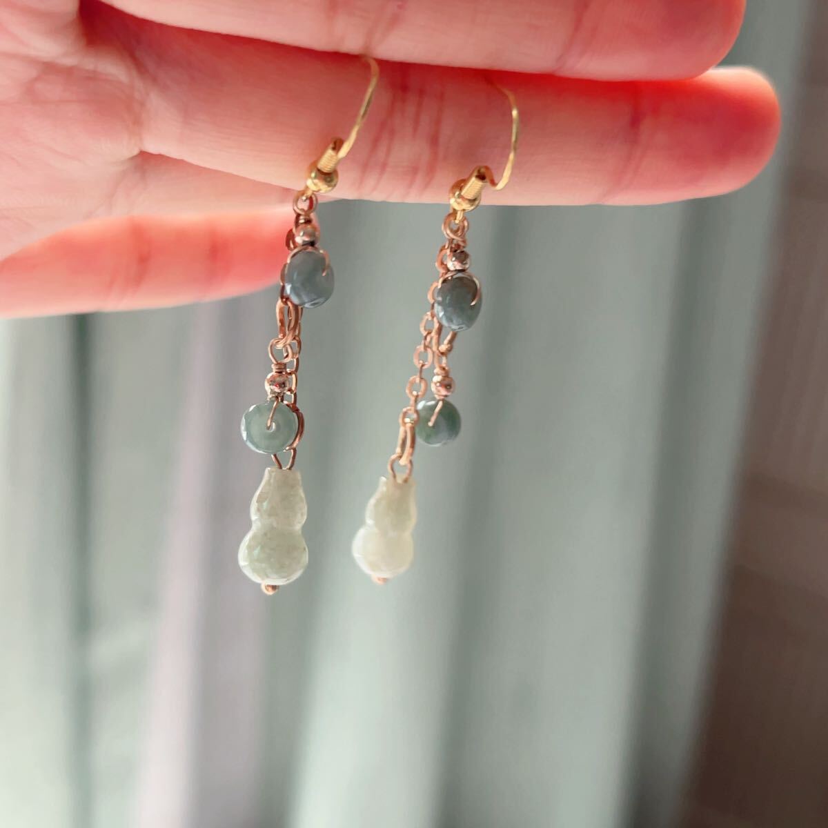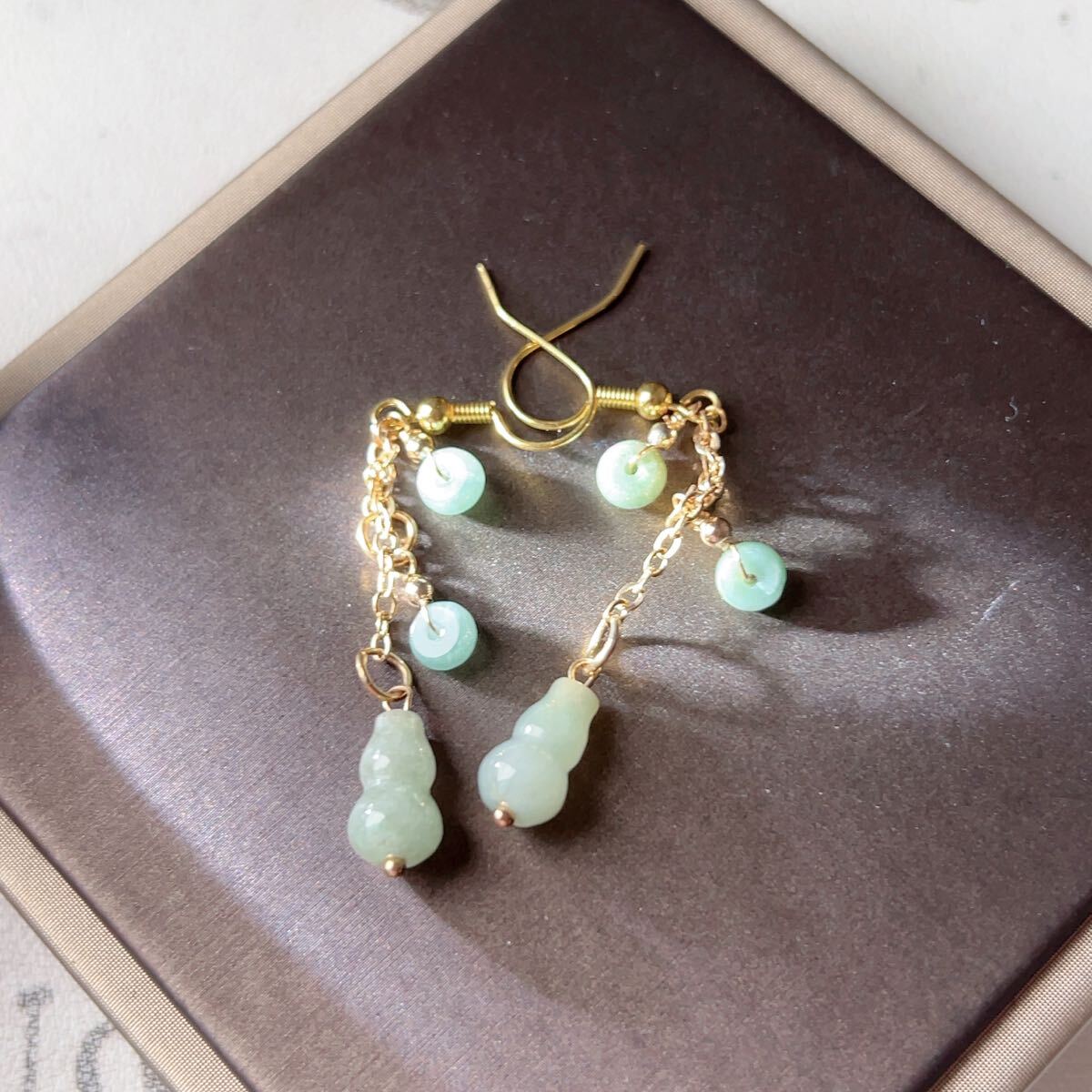 ◇ジェイド(本翡翠)・ヒスイ◇平安扣形◇ピアス◇瓢箪形◇天然石◇パワーストーン◇巾着袋付き◇プレゼントにも032R10508