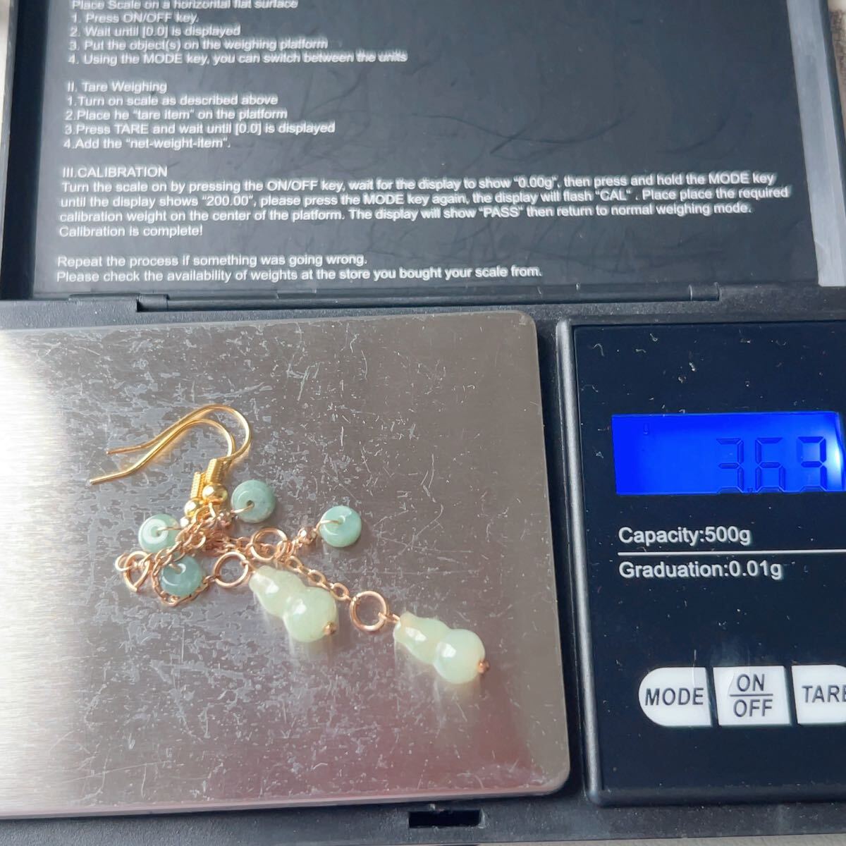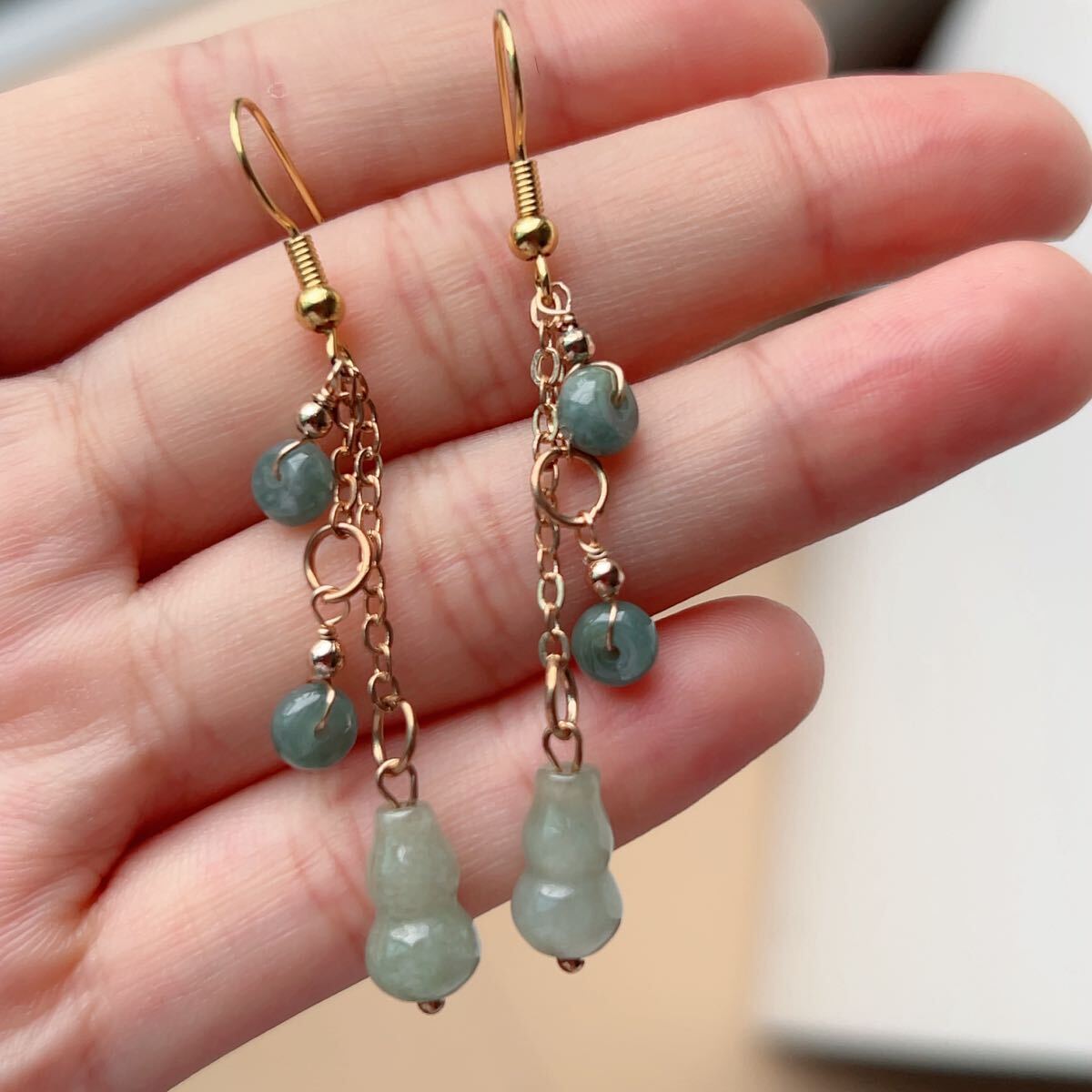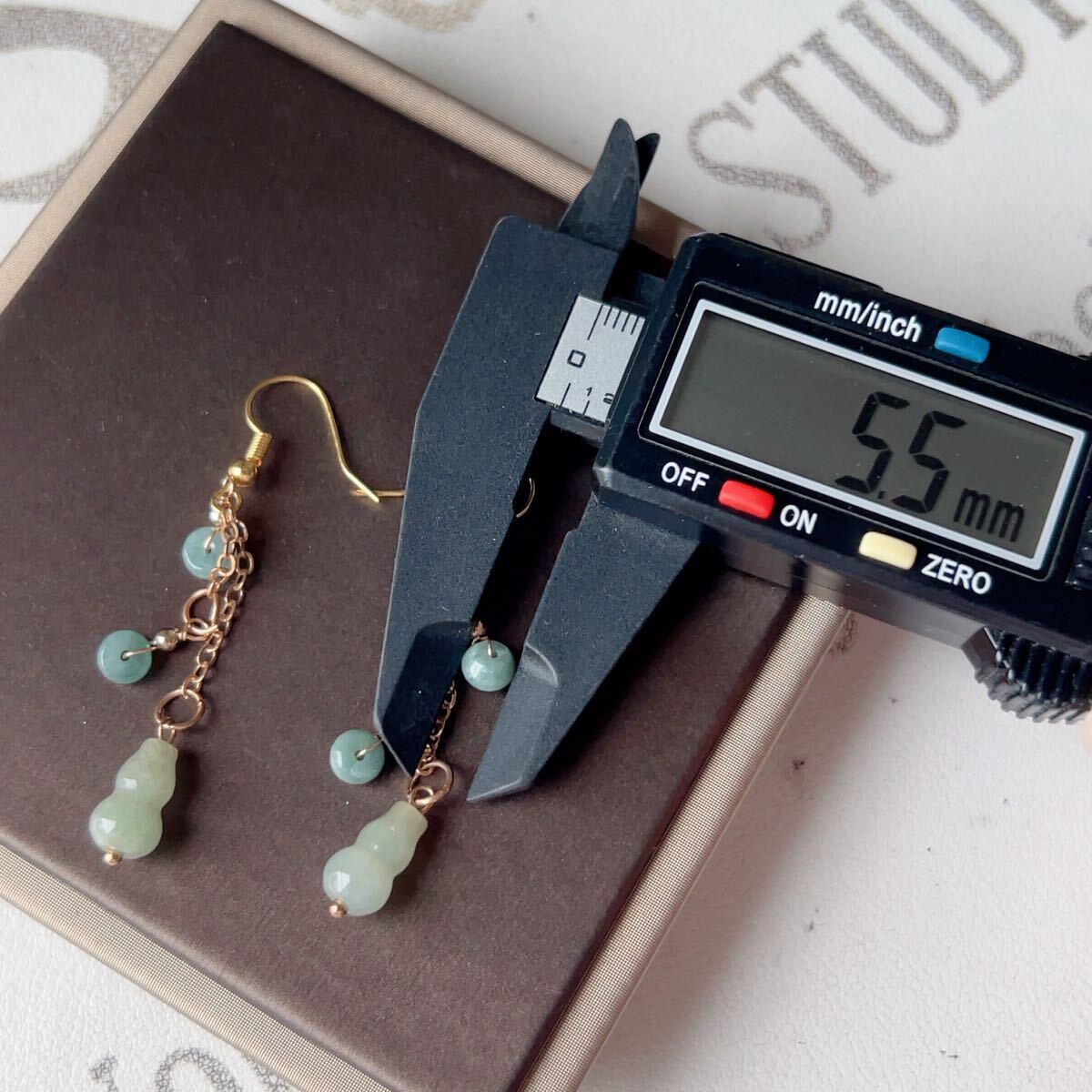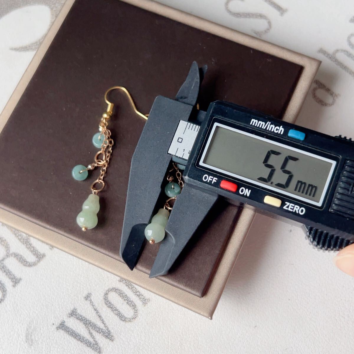 ◇ジェイド(本翡翠)・ヒスイ◇平安扣形◇ピアス◇瓢箪形◇天然石◇パワーストーン◇巾着袋付き◇プレゼントにも032R10508