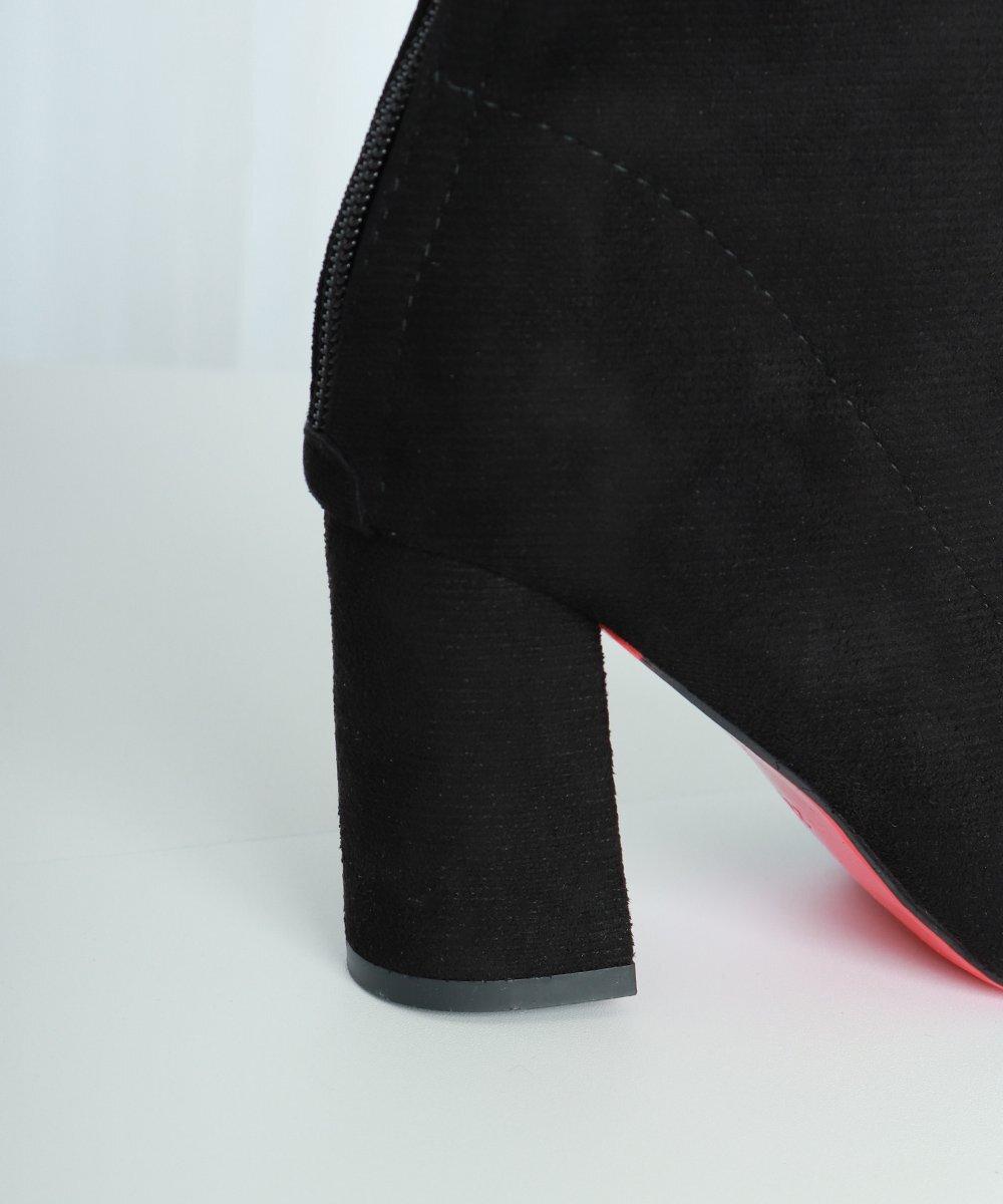 ブーティ ポインテッドトゥ 太ヒール 無地 美脚 通勤 OL 韓国 きれい 大人 おしゃれ シンプル 痛くない
