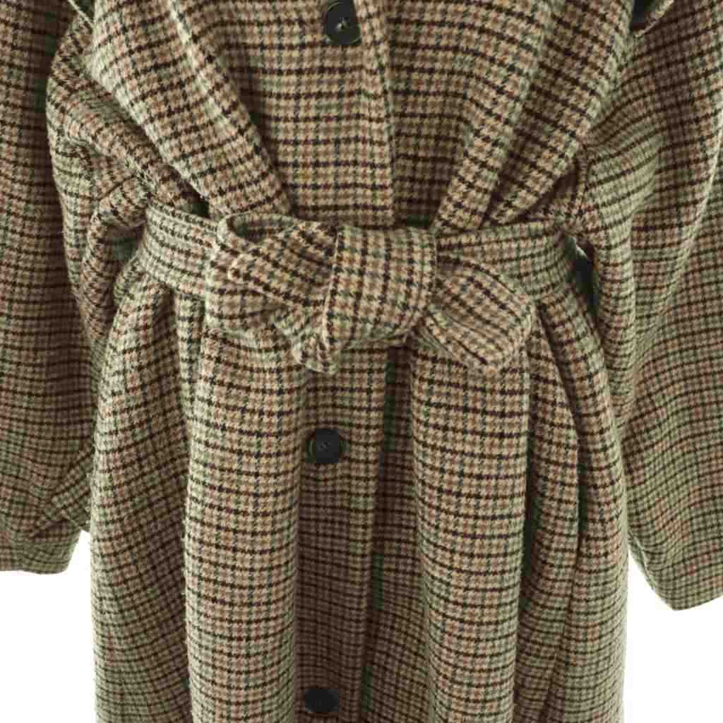 ローレン Louren ウール混 チェック ロングコート ステンカラー グレー /AT ■OS レディース