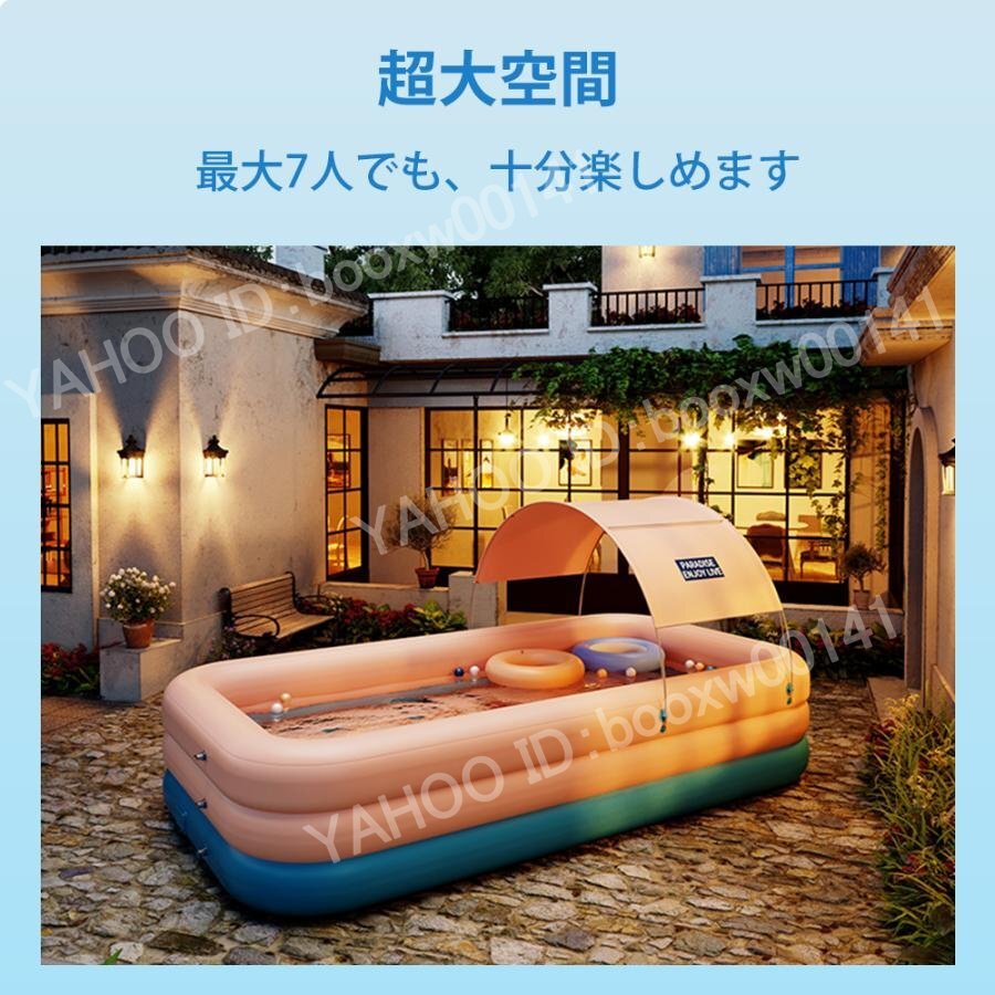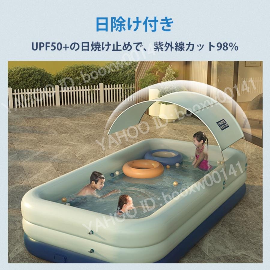 プール 家庭用 大型 自動空気入れ 2.1mサイズ ファミリープール ビニールプール 子供用 日よけ付き 水遊び 暑さ対策 夏 ブルー hhw0053.1