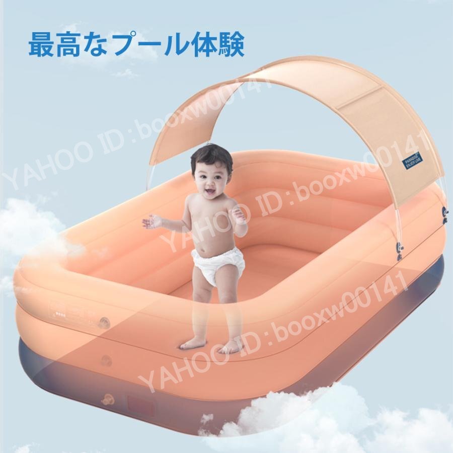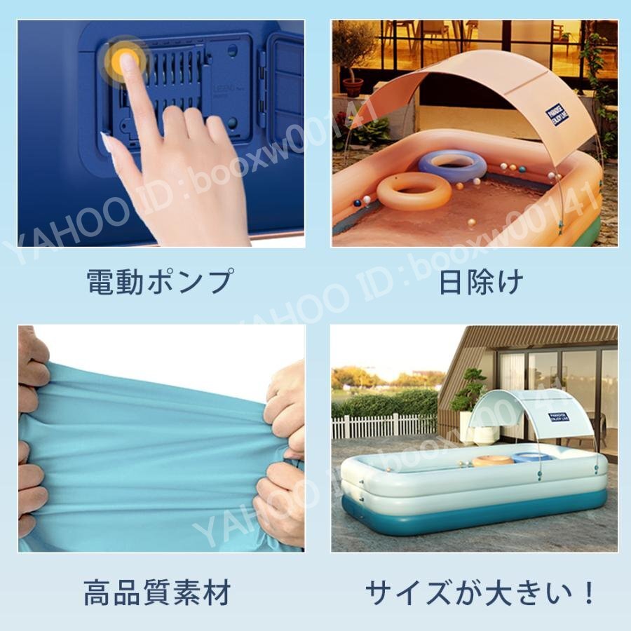 プール 家庭用 大型 自動空気入れ 2.1mサイズ ファミリープール ビニールプール 子供用 日よけ付き 水遊び 暑さ対策 夏 ブルー