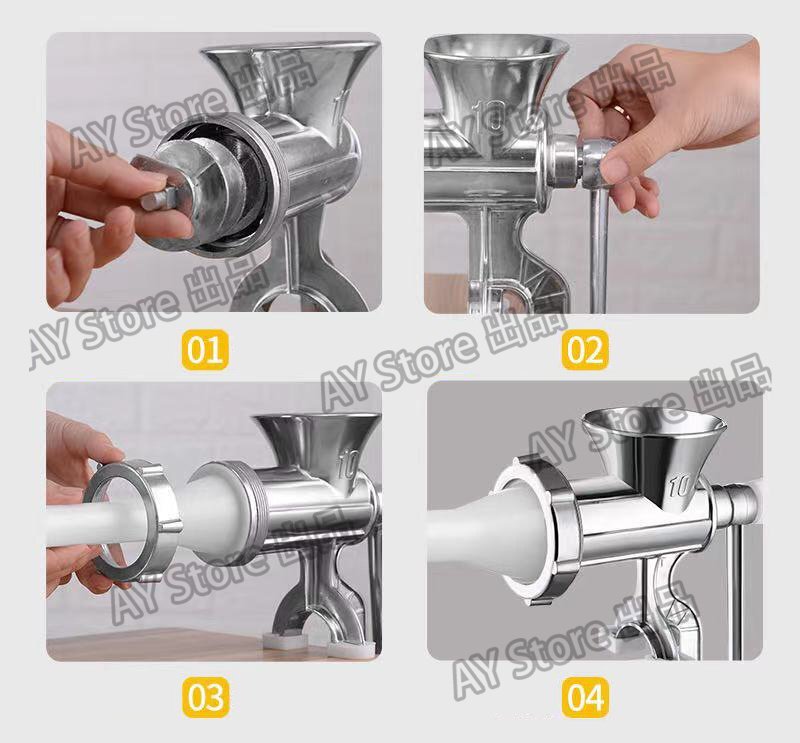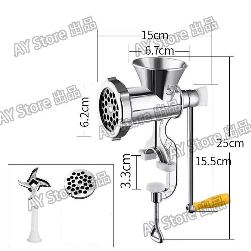 こちらのミンサーは、主にアルミニウム合金素材を使っており、頑丈で耐久性があります。 初めての使用時には、錆止めなどの鉄粉が出てくることがあります。よく洗浄してからご使用ください。お手入れは洗剤で洗って乾かすだけです。特別なお手入れは必要ありません。