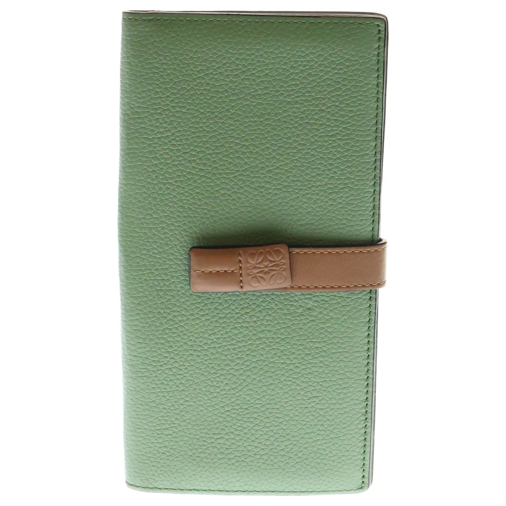LOEWE ロエベ バーティカルウォレット ロングウォレット 長財布 ライトグリーン×ブラウン シルバー金具 レザー