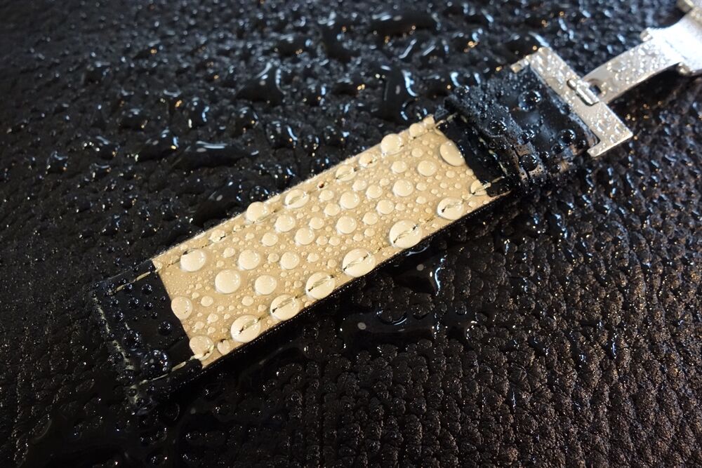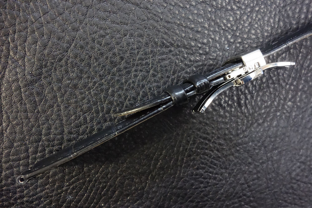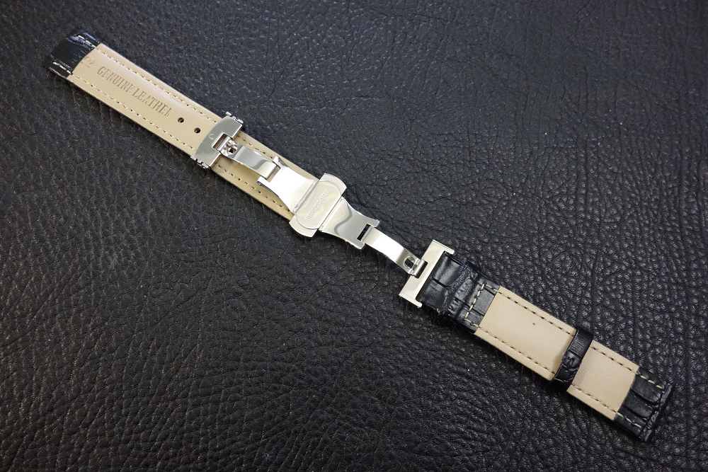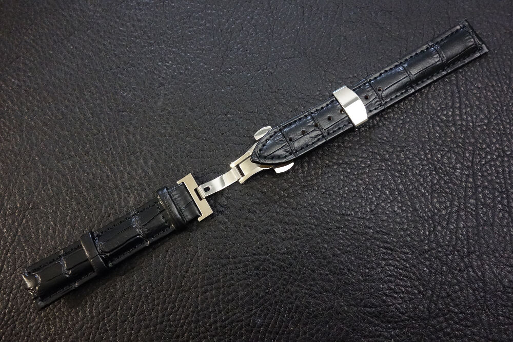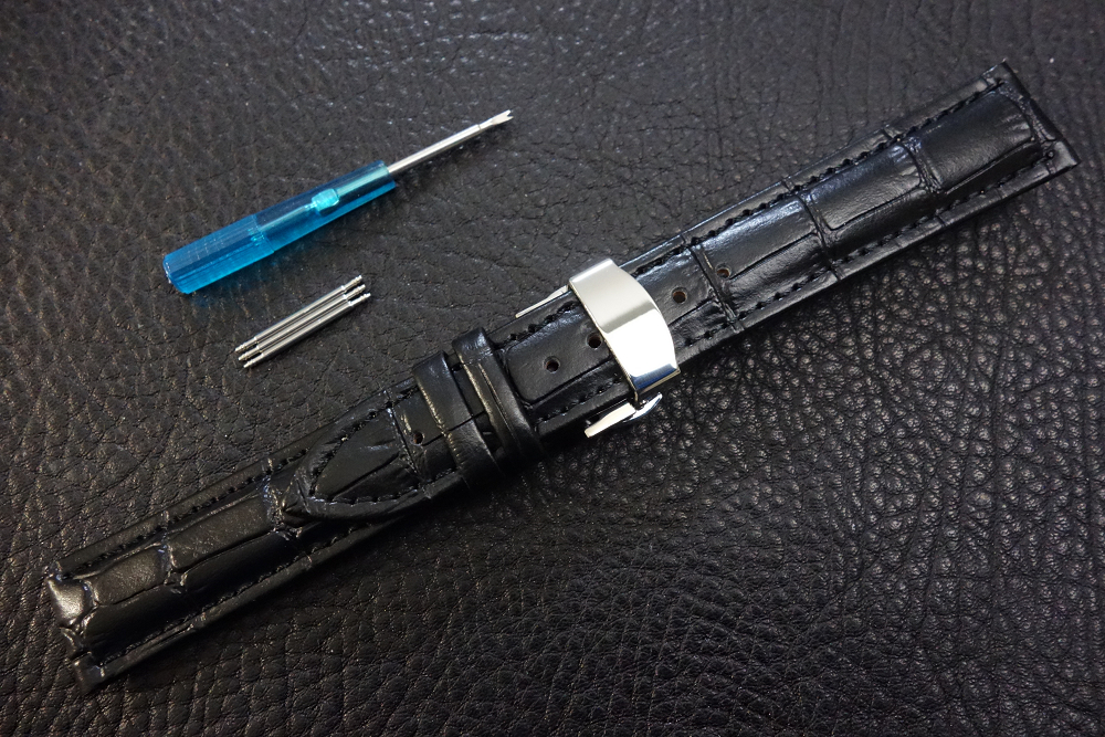 | ◆D-Buckle Watch Belt◆クロコ型押しCalf Leather 22mm 強力撥水 ブラック 新品 バネ棒 バネ棒外し付 本革 黒 STAINLESS BRACELET |