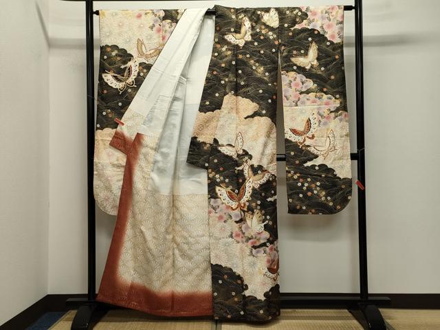 | 身丈 158cm(肩から) 裄丈 64cm 袖丈 106cm 縫込み 6cm 袖幅 33cm 前幅 24cm 後幅 29cm 着物縫いこみ 内揚げ 9cm 裄 お袖側 約4cm 身頃側 約5.5cm 《 サイズについてはこちら 》 |