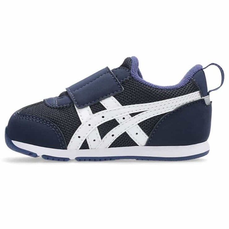 約1歳から3歳の幼児向けに展開する「BABY」シリーズのローカットシューズ。 扇形のつま先部分は足ゆびをのびのびと動かすことができ、踏ん張りやすいのが特徴です。 アウターソールは、足の屈曲位置に合わせて溝を配置した「フレックスグルーヴ」を採用。 足の動きにしなやかに追従します。かかとの安定性を重視し、かかとを包み込む立体的なインナーソールを使用しています。 インナーソールの表面材には抗菌・消臭効果のあるシャインアップと、汗をすばやく吸収・拡散してドライ感を保つウォーターマジックを採用。靴の中を快適に保ちます。 甲の内側を1枚の布で包み込むような構造のキモノフィットタンにより、フィット感を高め、アーチ部の倒れ込みを抑えます。 アッパーは通気性に優れたラッセルメッシュを使用。 街灯や車のライトなどの光を反射する再帰反射材(リフレクター)をかかと部に配置しています。 |