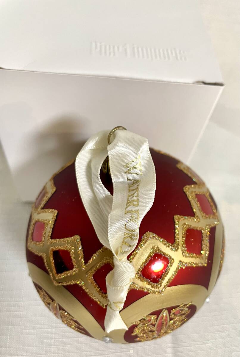 【極美品・元箱付】Waterford×Pier1 Importsウォーターフォード ガラスオーナメント クリスマスボール(約9.5cm) ツリー飾り