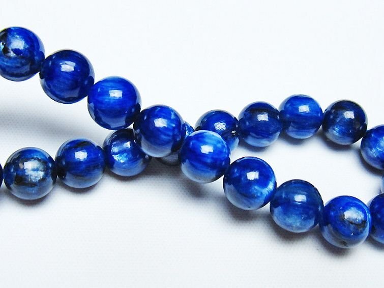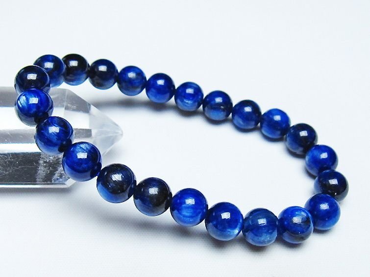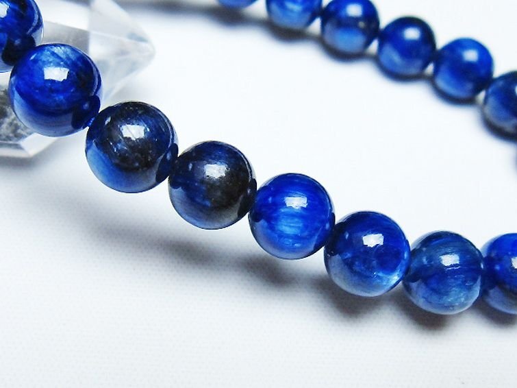 ■商品名: カイヤナイトブレスレット ■商品ID: T69-6341 ■商品重量:約 23.4g ■商品サイズ:内周約:156mm(±5mm)粒直径約:8mm(±0.5mm) 【カイヤナイト(藍晶石)】 カイヤナイトはギリシャ語で青色の意味の「kyanos」を由来にした藍色が美しいパワーストーンです。 変成岩の中に発見され、不透明なガラス質の結晶が薄い刃のような結晶が群生するクラスターとして産出します。 結晶の表面に走る条線が特徴で、へき開性を持ち硬度が方向によって異なる事から「二硬石」の別名もあります。 色は、白色や緑色などのものもありますが、藍青色がこの鉱物特有の色とされ、鮮やか且つ透明感があるものが高品質とされています。 カイヤナイトは適応を表す鉱物とされ、肉体面と精神面のバランスを保って各々を連携させ体中に一つの大きな力を満たす力があると言われています。精神的な成長を助け、思いやりと落ち着きをもたらしてくれるので冷静な思考へと導いてくれるでしょう。 ⇒ カイヤナイトをもっと詳しく ◆ワンポイント情報 カイヤナイトは全般的に硬度が低い石です。脆い箇所を持ち合わせている特性から衝撃に弱いため、ぶつけたり落下させたりしないようお取り扱いにご注意下さい。 |