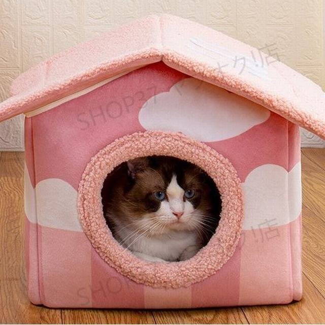 サイズ: S:38*32*32CM (体重約4kg以内のペット対応) M:48*40*40CM (体重約7kg以内のペット対応) L:52*43*43CM (体重約12kg以内のペット対応) バラして洗濯可能です。 猫や小型犬に適した居心地のペットベッドです。ペットが楽に出入りできるようにデザインしております。 安心な素材を使用しております。柔らかい生地のフチは空間を暖かくし、ペットが頭を乗せられる快適なヘッドレストとしても機能します。柔らかい生地で空間を暖かくし、手足が伸ばしやすく,もっちりとした感触の柔らかベッドがネコと犬の体をやさしく包まれ、ふんわり支えます。 底面には滑り止めのドリップモールドを施し、湿気を防げ、摩擦抵抗を増加させ、ベッドが滑りにくくなっています。