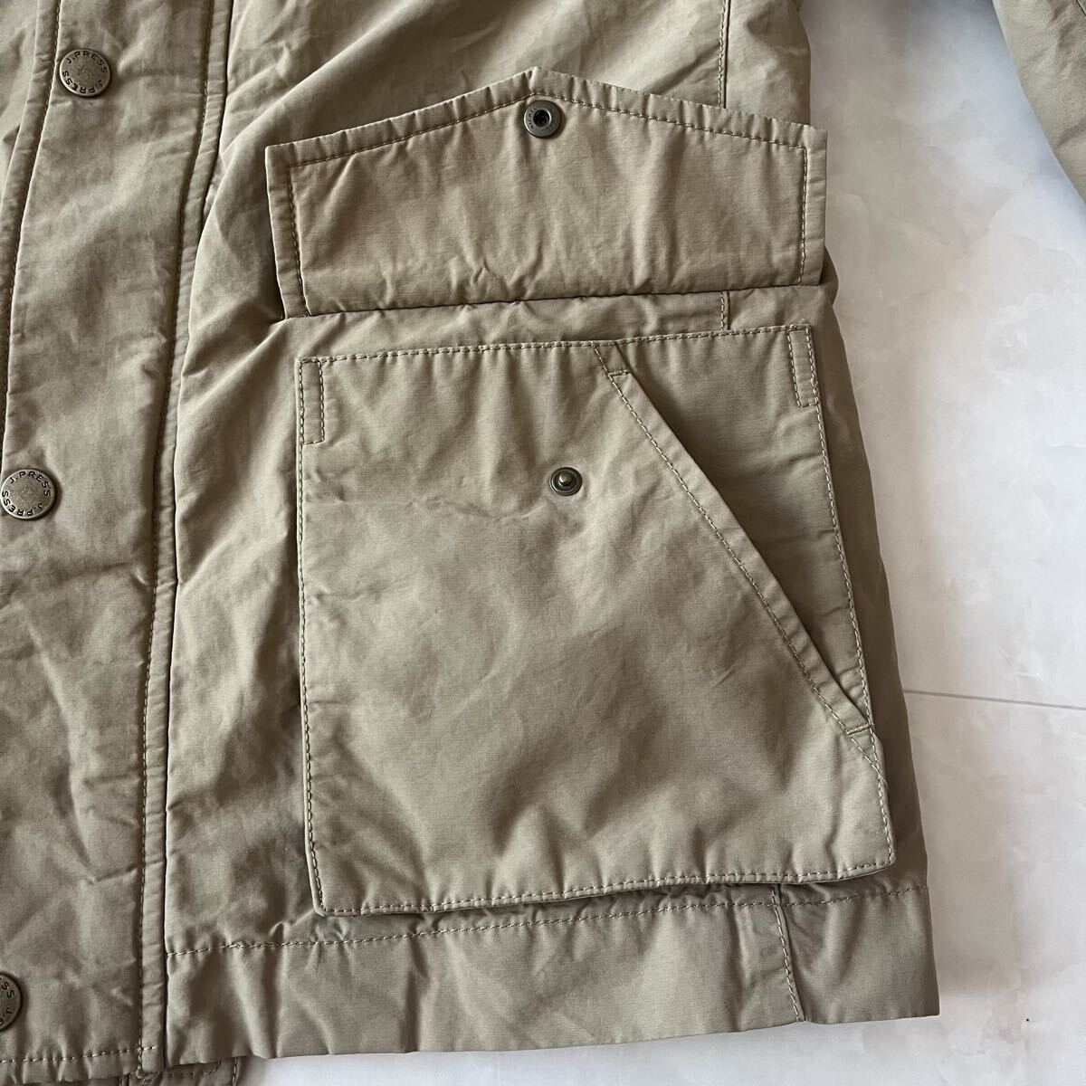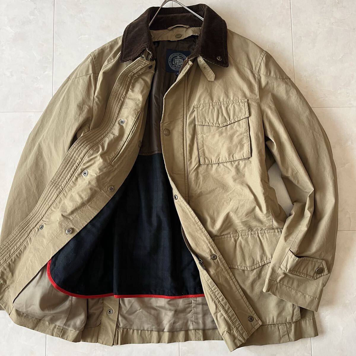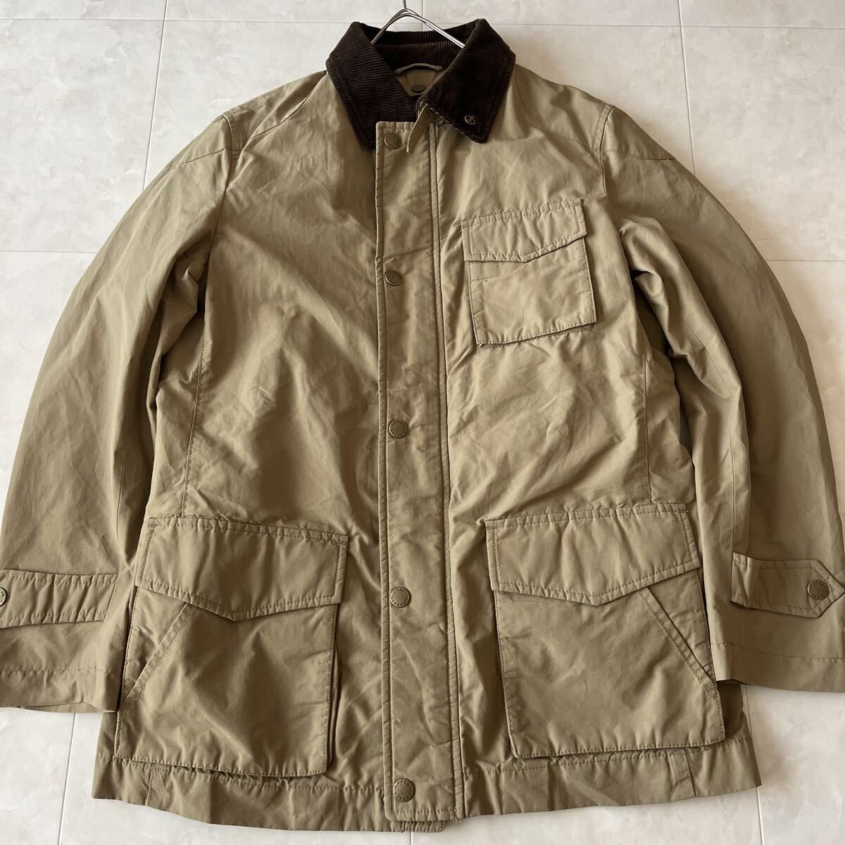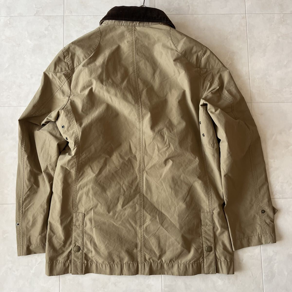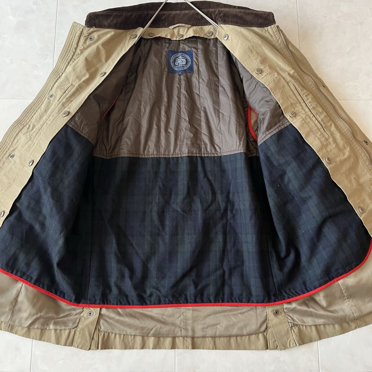 クラシックな英国調デザインと上品な佇まいが魅力の、J.PRESS(ジェイプレス)のバブアー風ジャケット。コーデュロイ襟と内側のチェックライナーが特徴的で、アメトラ×ブリティッシュを融合させた名品です。軽量ながらも防風性・撥水性に優れ、タウンユースにもアウトドアにも対応する万能アウター。美品コンディションの一着です。
