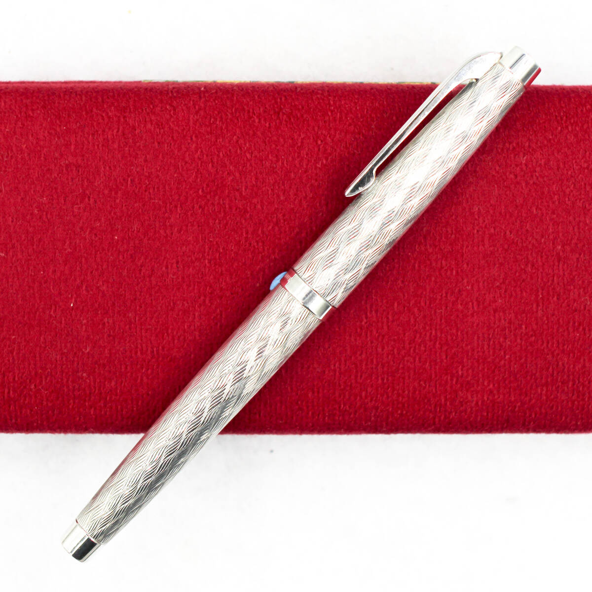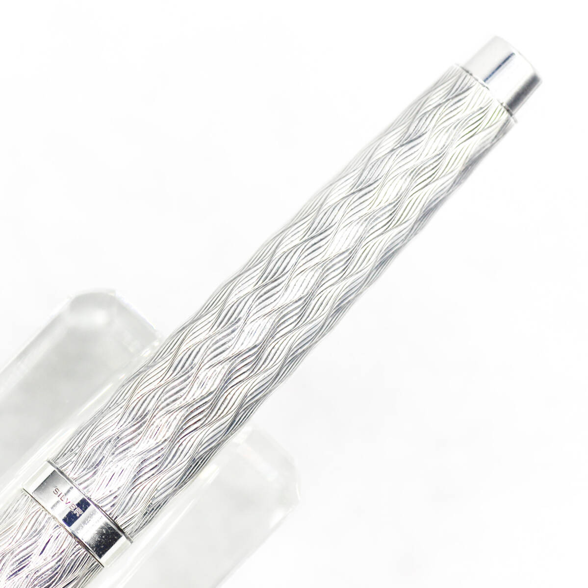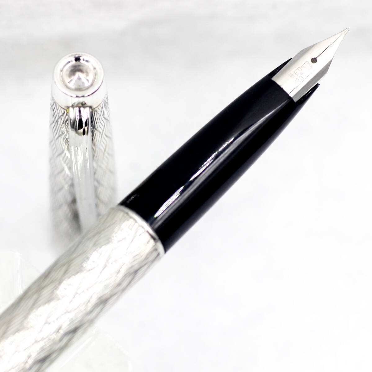 〇 細やかな波が規則正しく精緻にレリーフされたボディーは文字通り白銀の輝きを放ち、優美なフォルムと相俟って、実に清々とした気品溢れる万年筆です。この模様のために持ち易く滑り難く、優れた筆記感を持っています。