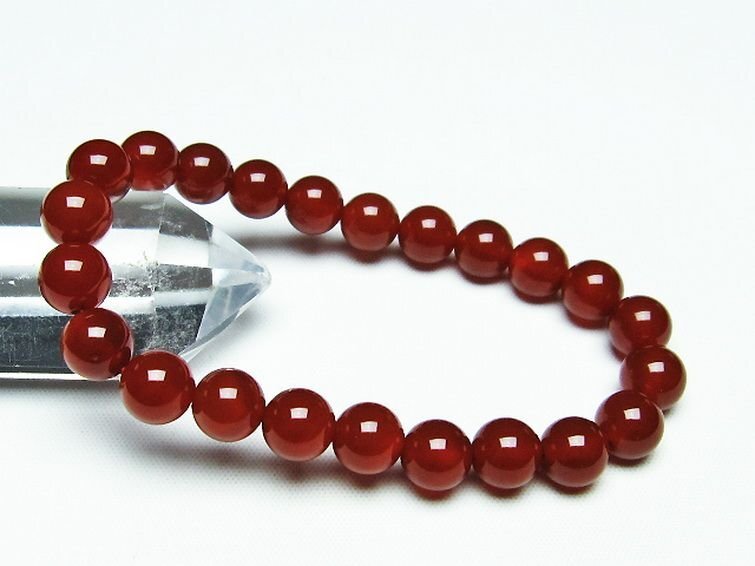 ■商品名: 赤アゲートブレスレット ■商品ID: T57-6708 ■商品重量:約 17.3g ■商品サイズ:内周約:158mm(±5mm)粒直径約:8mm(±0.5mm) 【アゲート(瑪瑙)】 和名では瑪瑙(めのう)といい、アゲートの模様が馬の脳のように見える事からこのような名前が付けられました。 アゲートは赤、緑、青、黄、黒など、様々な色に着色されることで石本来のパワーがさらにアップするといわれており、着色により魅力を増す天然石はアゲートだけとも言えます。 さらにはアゲートを組み合わせるとペアになっているペアアゲート(トレジャーメノウ)は龍穴を生み出すとされ、風水的にも良いといわれています。 アゲートは古来より日本やインドやチベットなどで魔よけやお守りとされてきました。 失敗や不幸を遠ざけ金運や仕事運、成功運とも結び付けてくれる効果のほか、安産のお守りにも良いとされています。 さらに家庭円満や対人関係をスムーズにするなど、オールマイティな効果を持った石です。 ⇒ アゲートをもっと詳しく ◆ワンポイント情報 アゲートはカルセドニーの変種で、染色がされていなくともそれぞれの種類に多様な色があります。 ざっと仲間を挙げてみてもオニキス(黒)、サードニクス(橙色)、ブルーアゲート(青)、グリーンアゲート(緑)、イエローアゲート(黄)、ブルーレースアゲート(縞青)、モスアゲート(縞緑)、天眼石(縞黒)、カーネリアン(橙色)、ジャスパー(多様な縞)などとても多くの特徴と色合いを持っています。 |