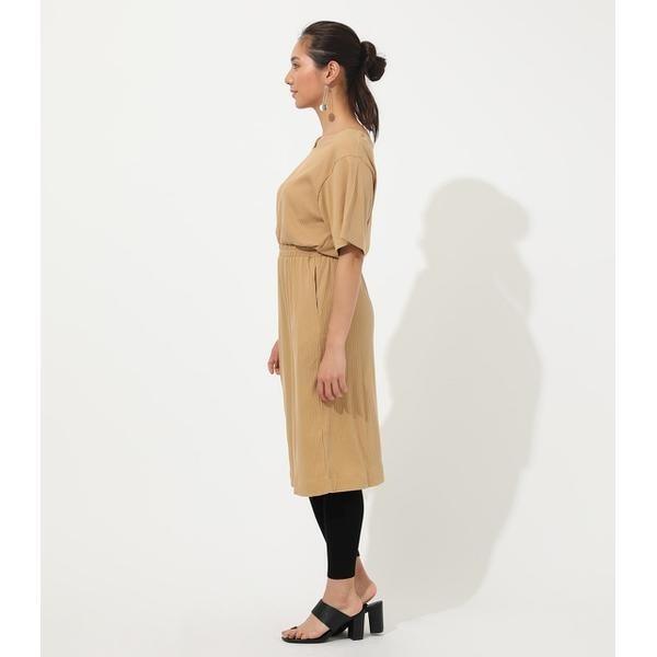 ストレッチとドレープ性のある、ソフトタッチのリブです。ゆったりとしたアームホールで汗染みを防ぎ、二の腕ラインをカバーしてくれます。ウエストゴム使用で、着用を繰り返してもゴムが泳がない仕様にしました。リブ編みの表情感がポイントです。