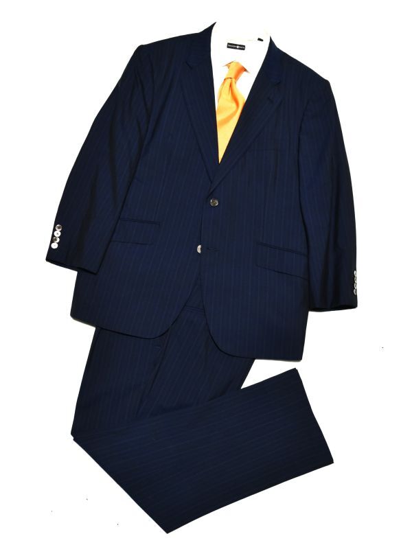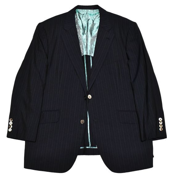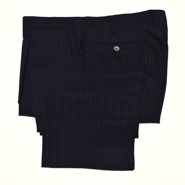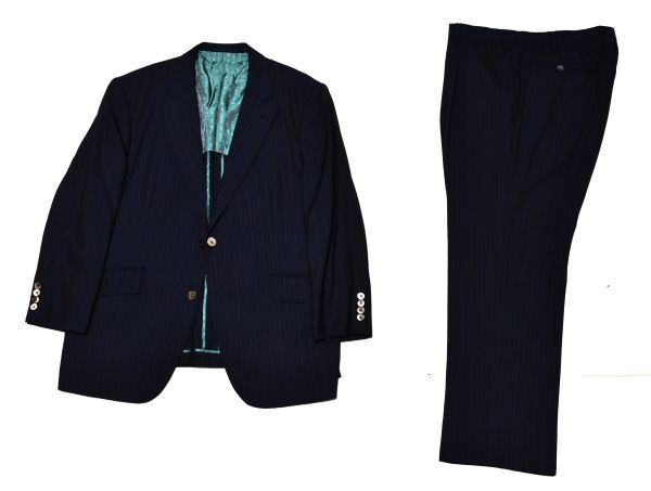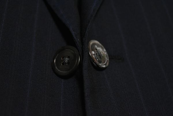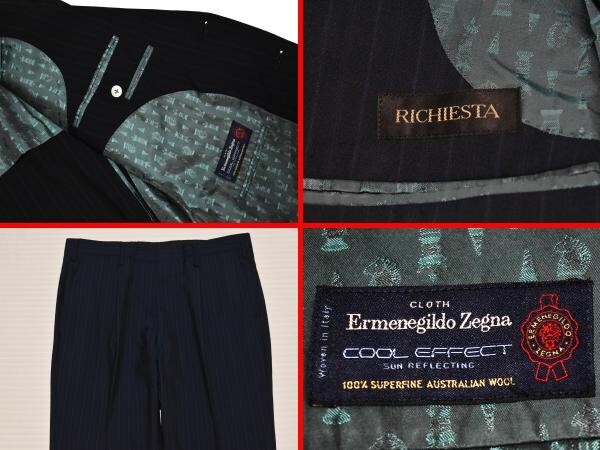 265★Ermenegildo Zegna COOL EFFECT★人気ゼニア★ネイビーにブルーストライプがお洒落★快適で着心地良い2釦スーツW96太目3シーズンM