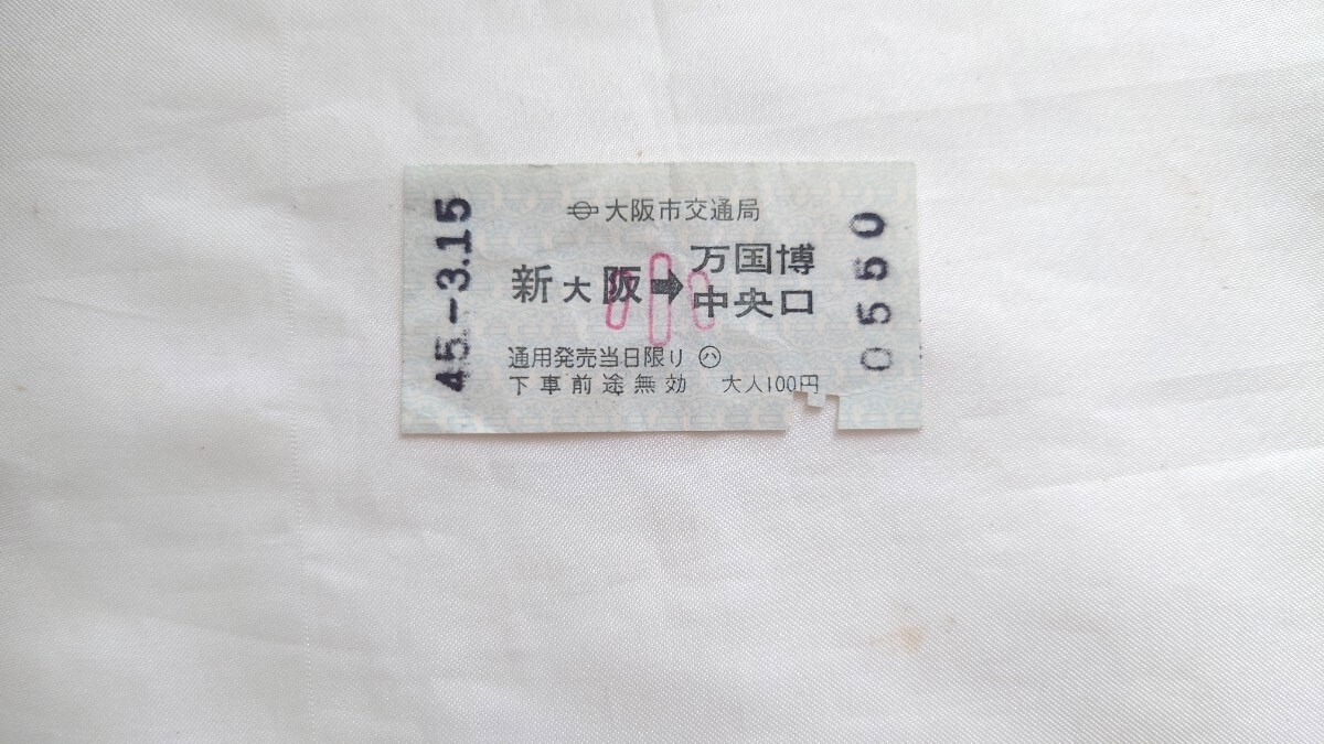 ▼大阪市交通局▼新大阪→万国博中央口 券売機小児乗車券 昭和45年▼EXPO'70大阪万博