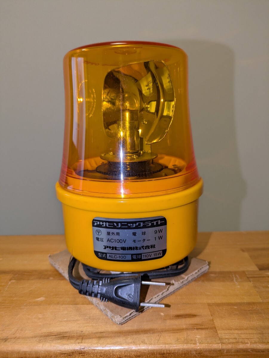 アサヒ電機製の小型回転灯です。5分ほどの動作確認では異常は見られませんでした。未使用ですが保管によるキズ等はご了承下さい。3Nでお願いします。