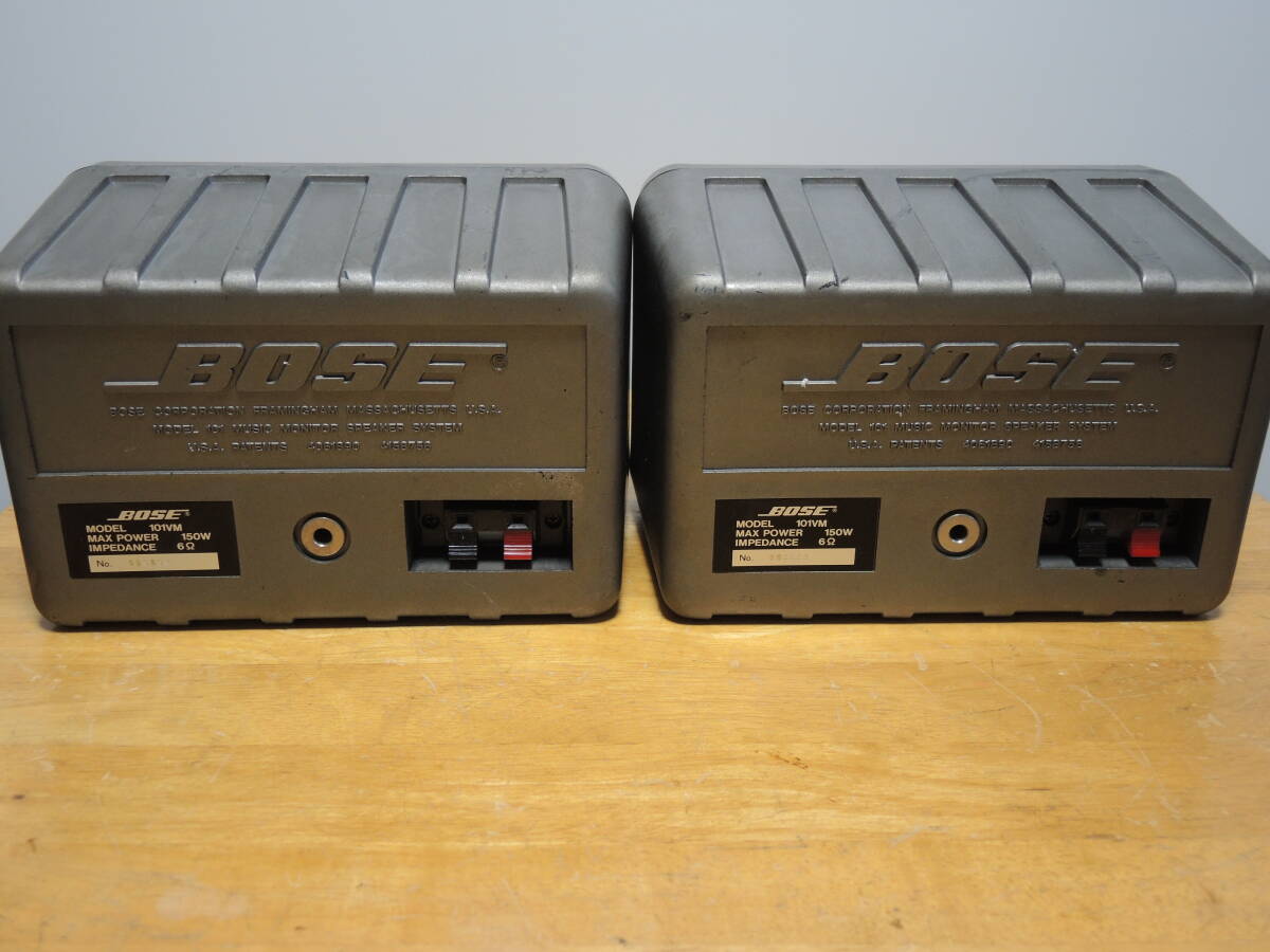 BOSE ボーズ MODEL 101VM ペアのUSED品です。頂き物ですが使わないので出品します。 音出し確認済で、評判の明るくハリのある再生音です。 スピーカーユニット、全面バッフル、ネットはきれいな状態ですが、エンクロージャー外装にはそれなりの表面コスレ、 若干の小キズ、色ハゲなどが見られ見られますが全体的には経年のUSED品としては、まあまあな状態だと思います。 *悪いの評価が5以上の方、または10%以上の方、落札後すぐに連絡が送れない方の入札はトラブルが多いので入札禁止とさせていただきます。 商品の発送は宅配便の着払いでお送りいたします。100サイズ位になると思います。尚、ノークレーム、ノーリターン了承の上入札してください。
