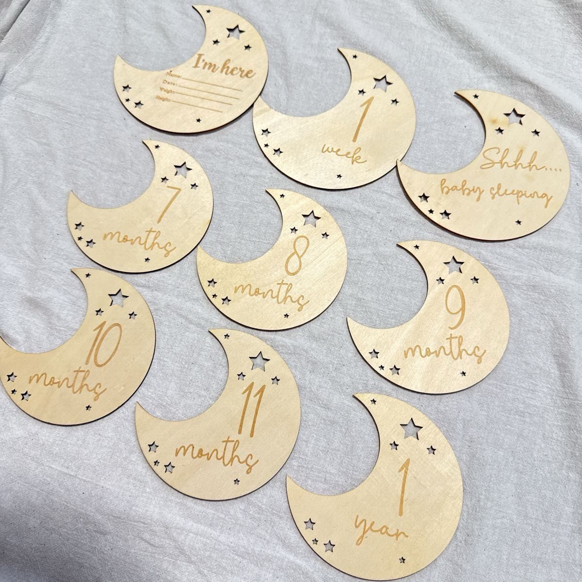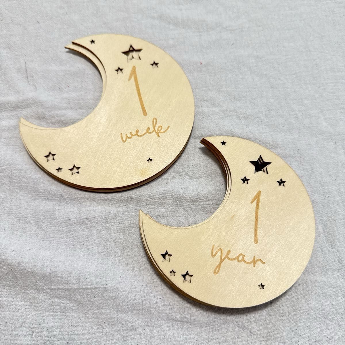 ナチュラルでかわいいウッド素材の月齢カードとレターバナーのセット