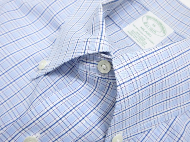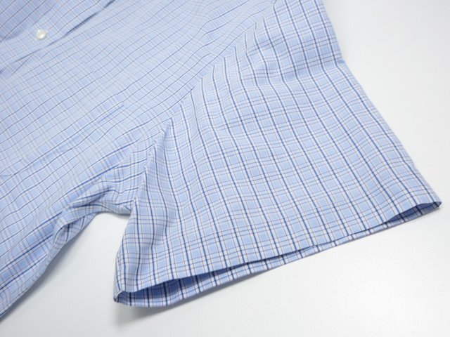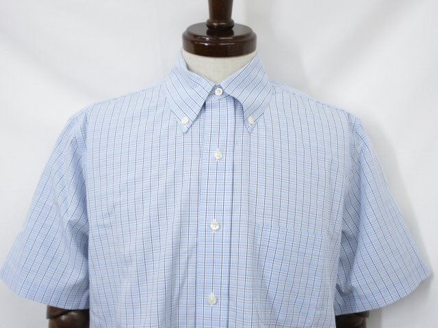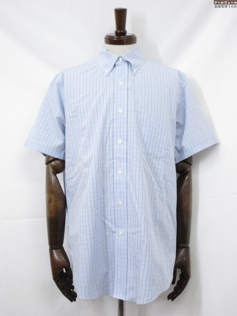 超美品【ブルックスブラザーズ】コットン100% ボタンダウン チェック柄 半袖シャツ (メンズ) size16 ブルー系 ◇17MK6273◇