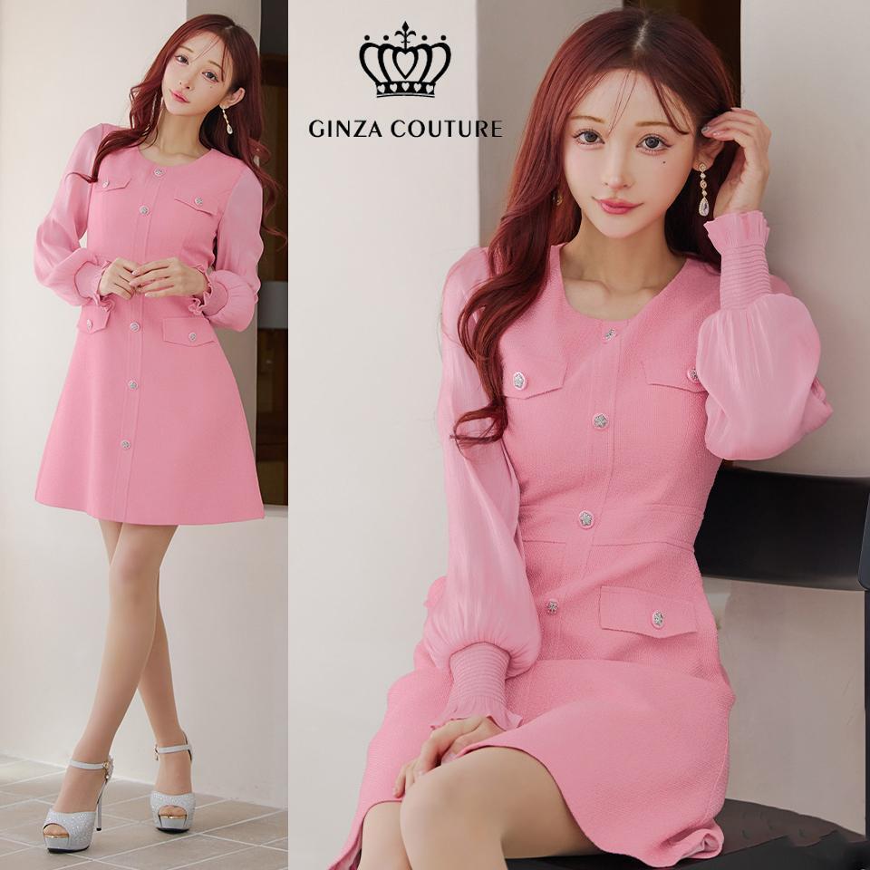 ERUKEI エルケイ シアースリーブ Aライン ミニドレス ピンク キャバドレス GINZA COUTURE 銀座クチュール