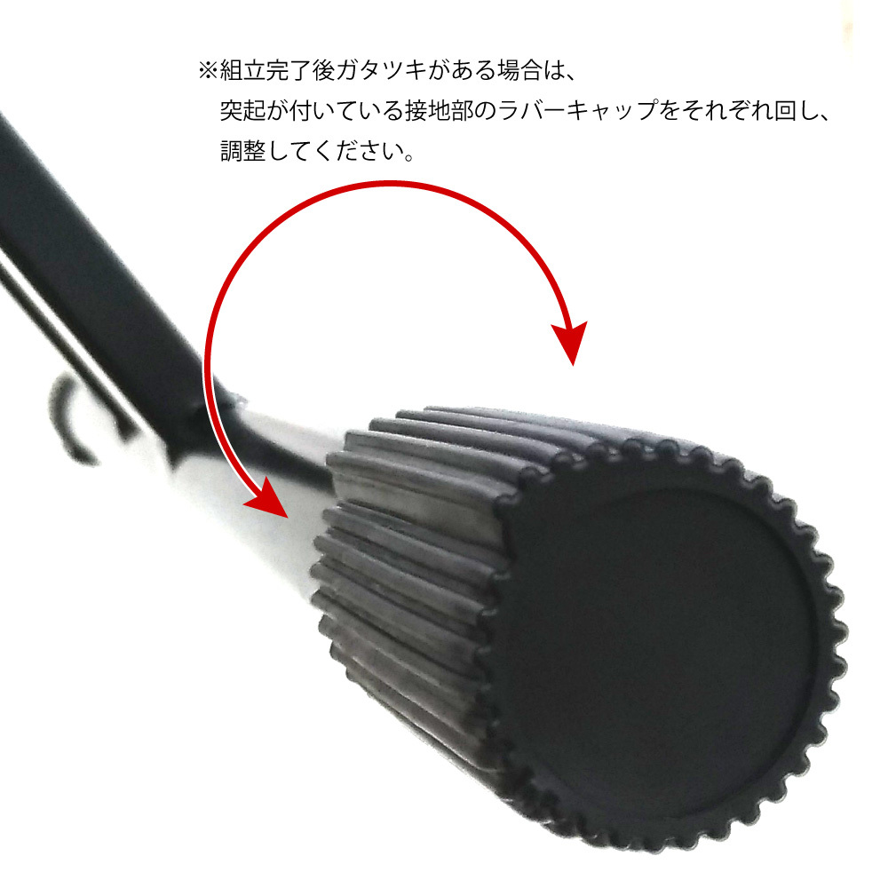 ※組立完了後ガタツキがある場合は、突起が付いている接地部のラバーキャップをそれぞれ回し、調整してください。