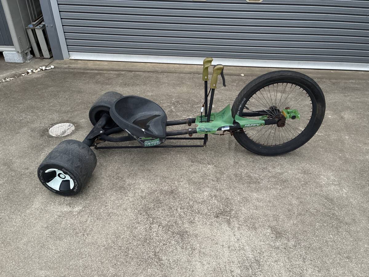 HUFFY のドリフト三輪車です。 駆動力はもちろん 人力。電動なんて甘えはありません。 ブレーキは壊れています。(というか、使ったことすらありません。) スピードは気合と足次第。止まる勇気が試されます。 いい感じにヤレています。 傷・サビなども含め、写真で状態をご判断ください。 【取引条件】 引き取り希望です。 発送も対応可能ですが…正直、梱包に時間かかります。サイズも未知です。 着払いでお送りします。(送料に震えないでください。) 遊び心のある方、ネタとしても、ガチで直して遊ぶ方にもおすすめです。 玄関やガレージのインテリアにもどうぞ。