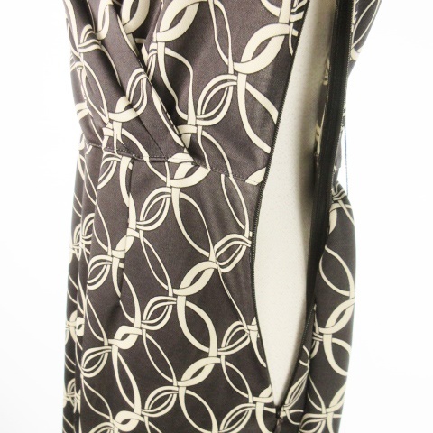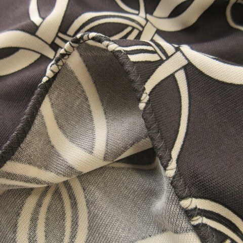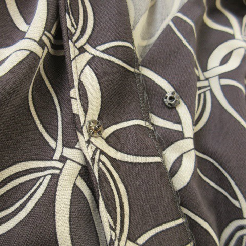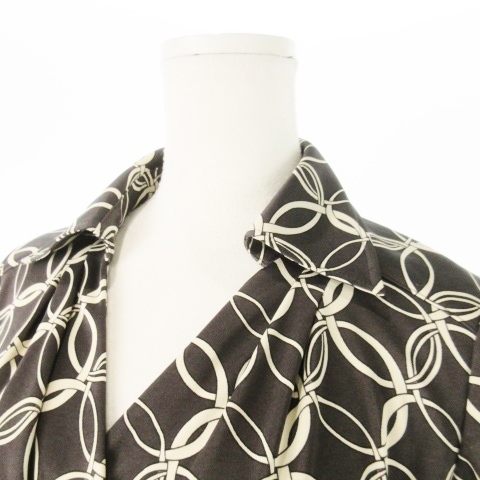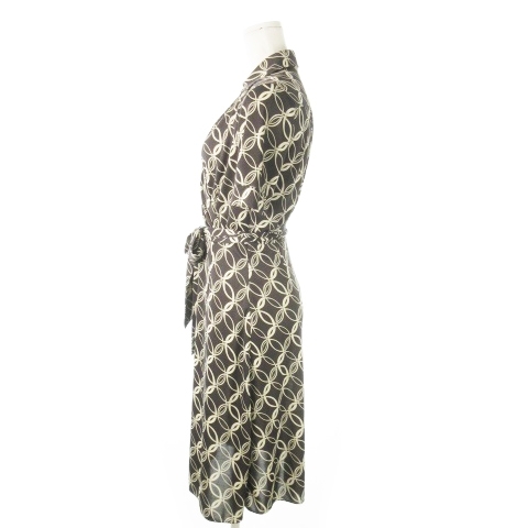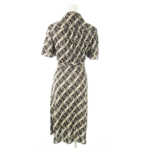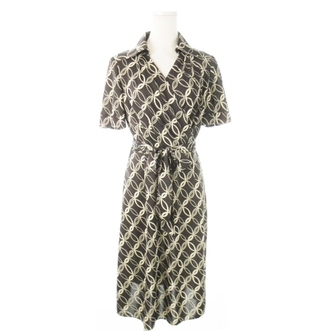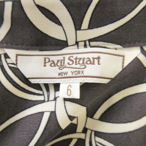 ポールスチュアート PAUL STUART ひざ丈ワンピース カシュクール 襟付き スキッパー 半袖 ストレッチ とろみ 総柄 リボン 6 M 茶