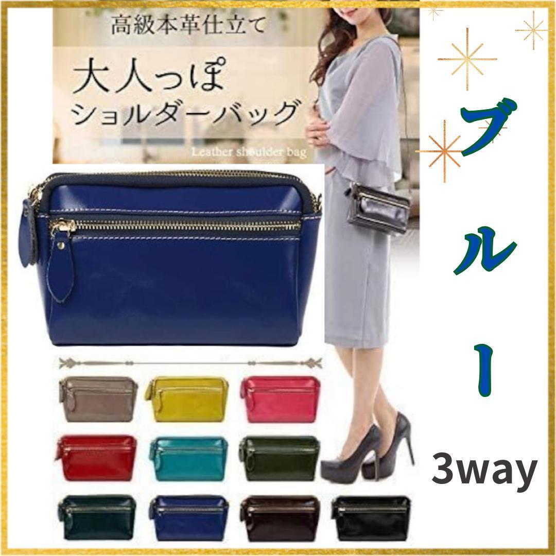【便利な3way】 本革 お財布ポシェット ショルダーバッグ レディース ブルー